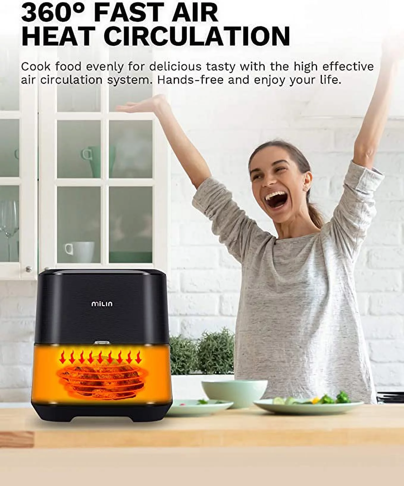 MILIN Air Fryer 5.8 Quart, 1700-Watt Electric Hot Airfryers Oven with LED Digital Screen and Temperature Control, 7 Presets, Nonstick Basket, 100 Recipes & ETL Certified