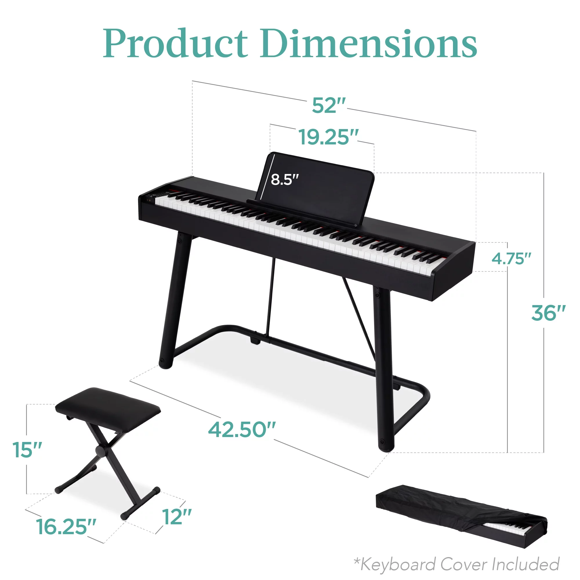 Best Choice Products 88-Key Weighted Full Size Digital Piano Set w/ U-Stand, 3 Sustain Pedal Unit, Stool, Cover