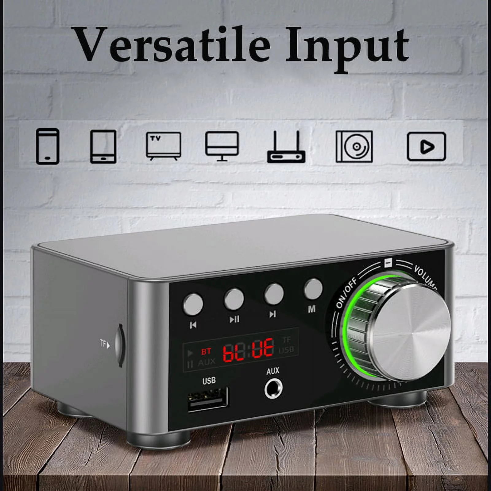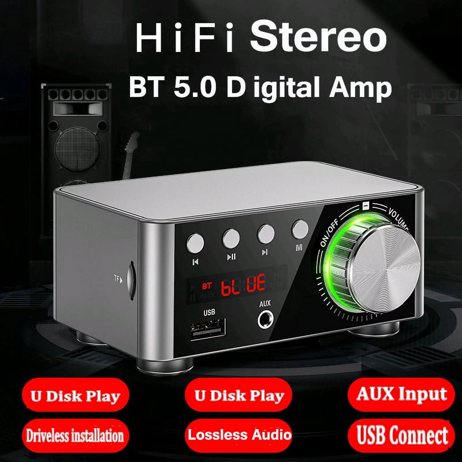 HIFI BT5.0 Digital Amplifier Mini Stereo Audio Amp 100W Dual Channel Sound Power Audio Receiver Stereo AMP USB AUX for Home Theater USB TF Card Players Black