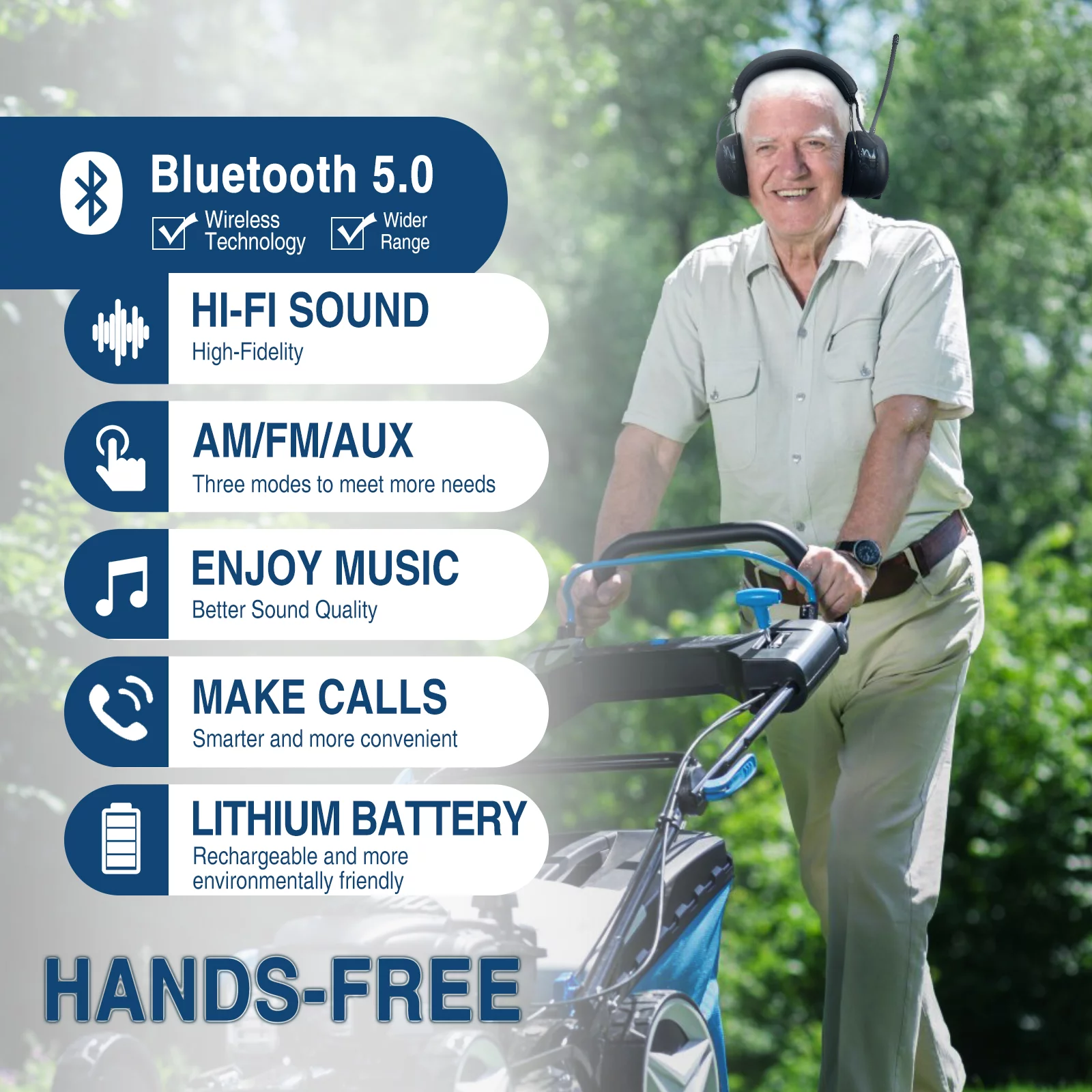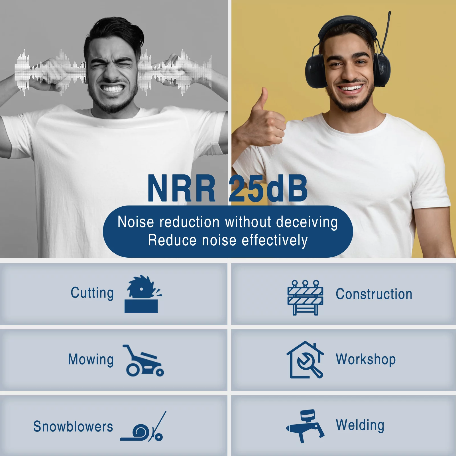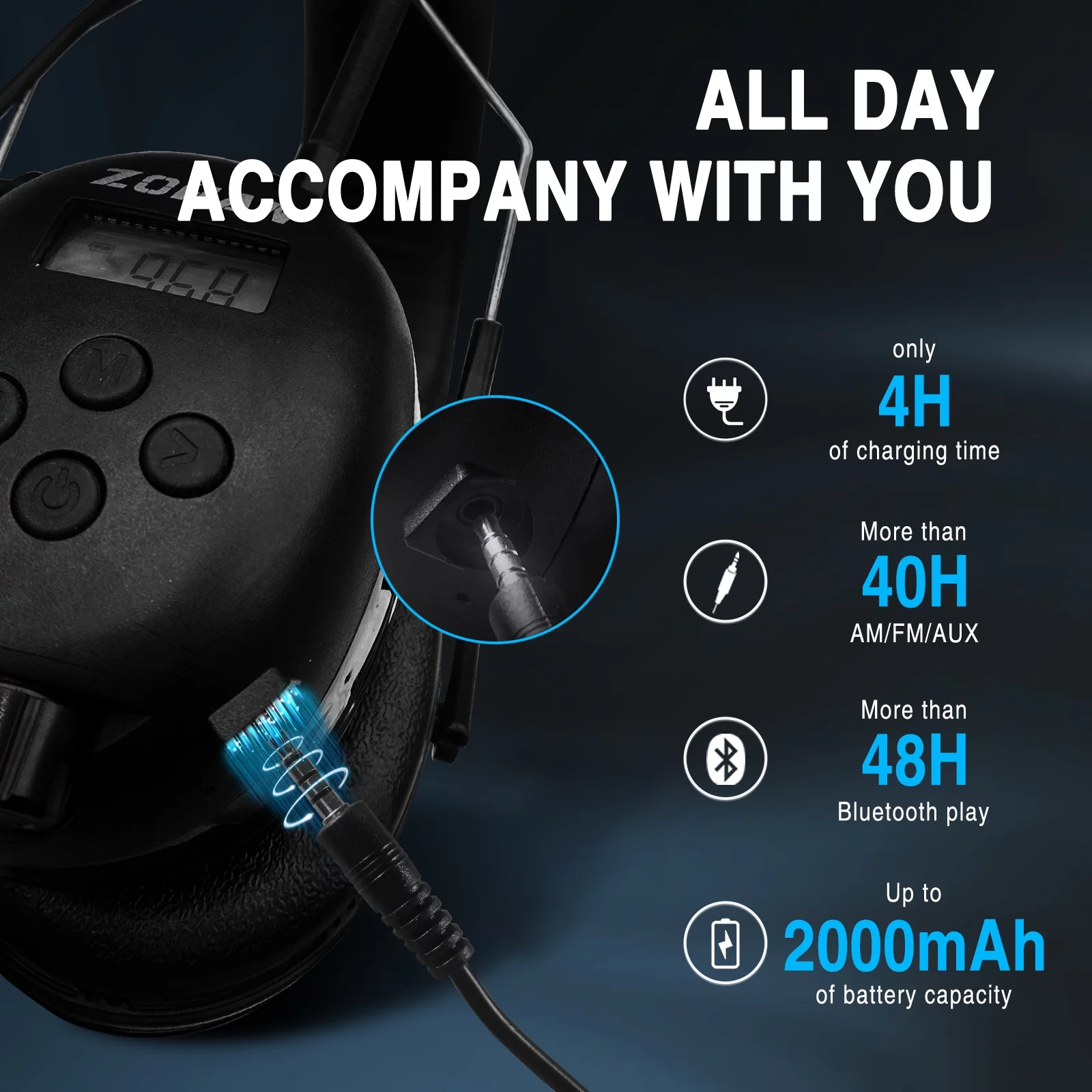 ZOHAN 033 Bluetooth 5.0 AM FM Radio Headphones with Digital Display, 25dB NRR Noise Reduction