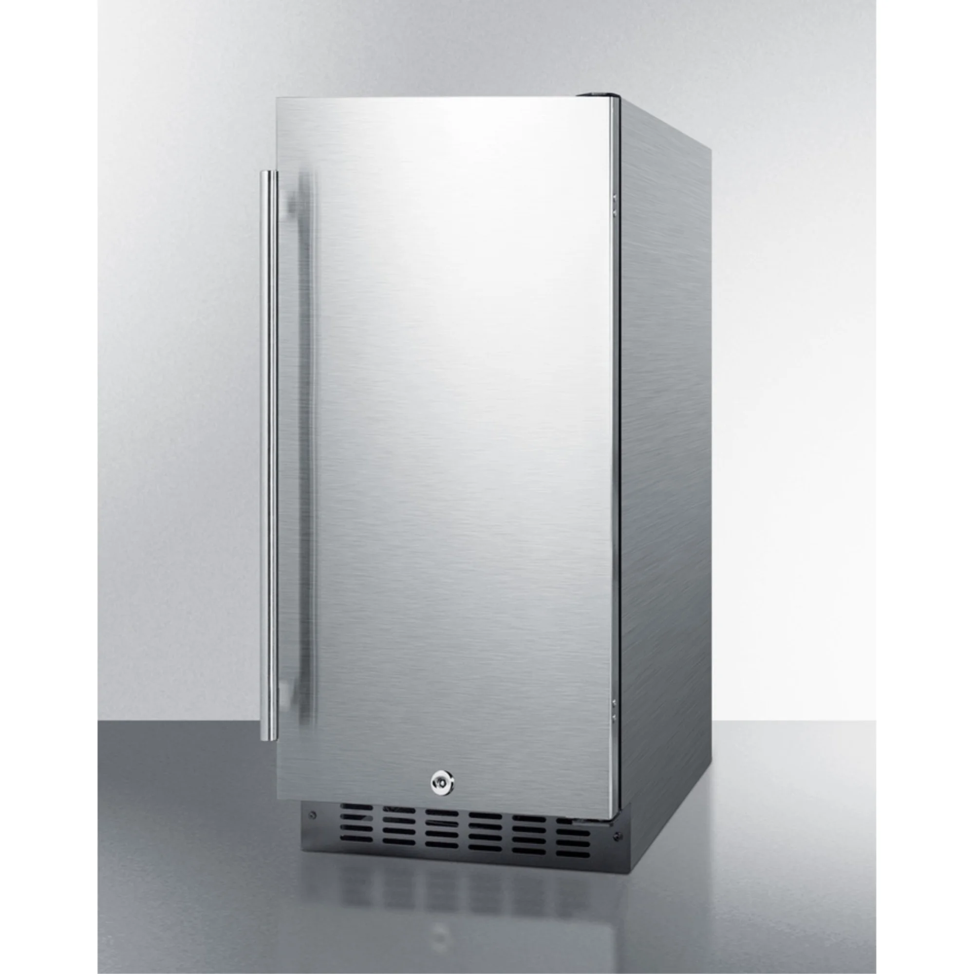 15" wide ADA compliant all-refrigerator for built-in or freestanding use, with digital controls, LED light, lock, and stainless steel wrapped exterior