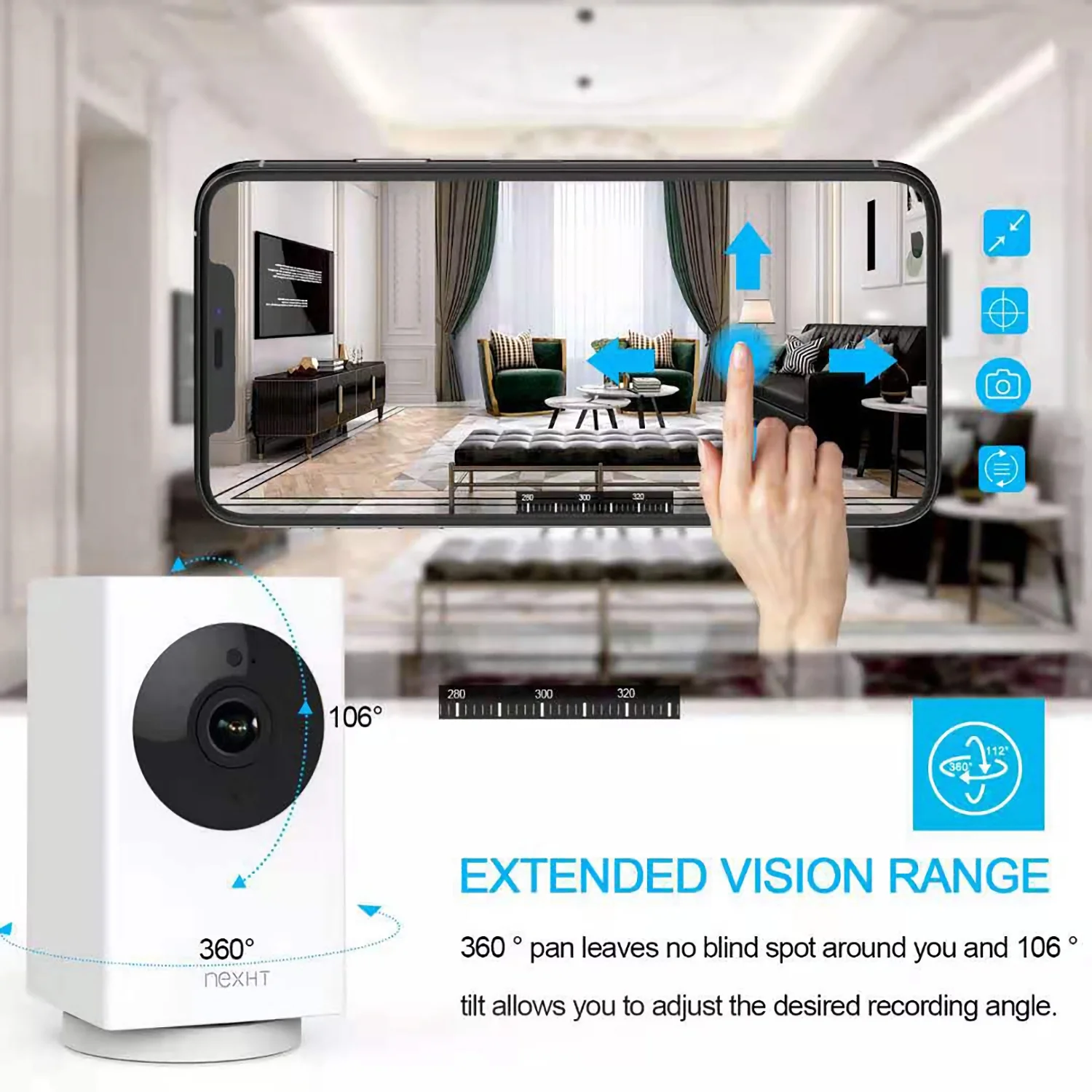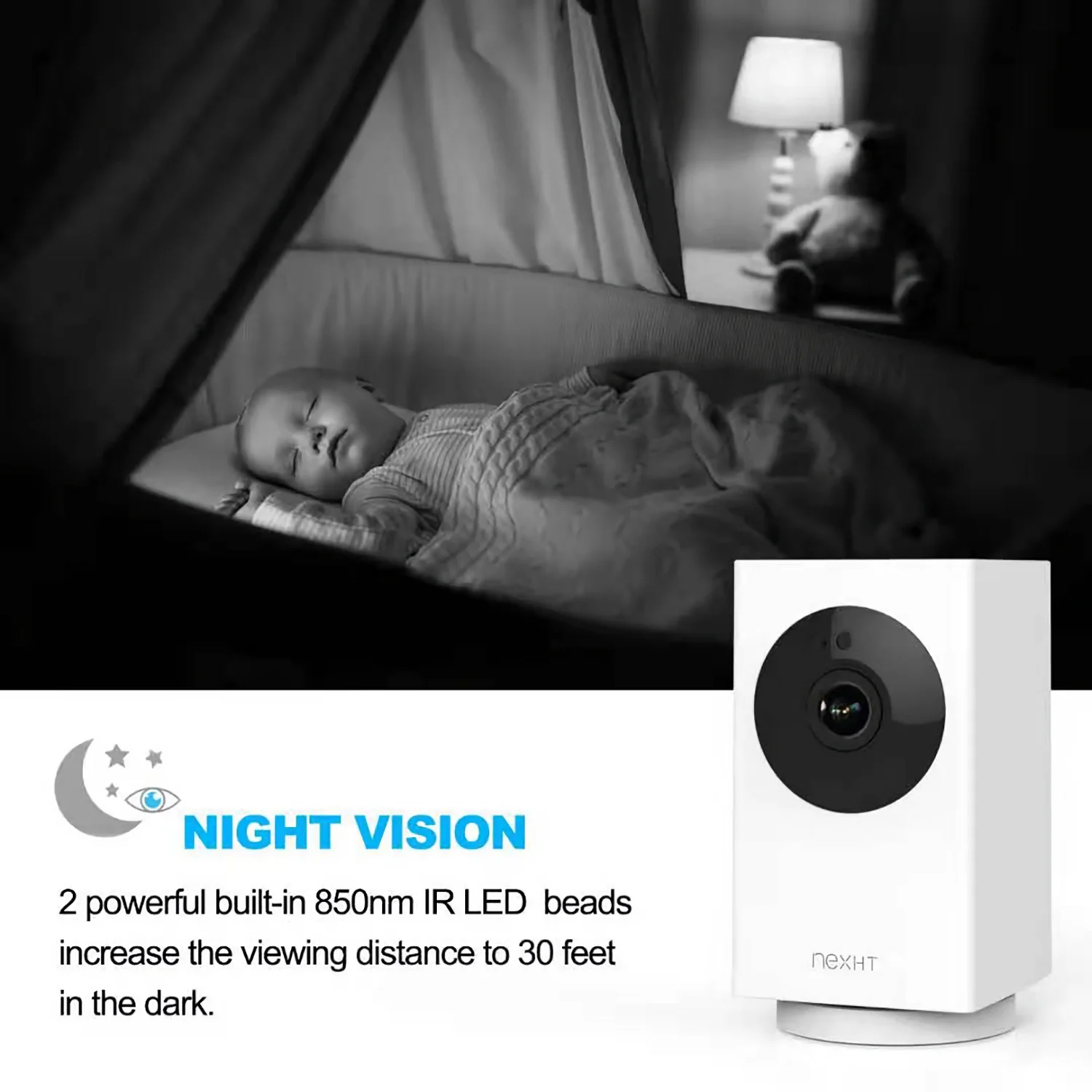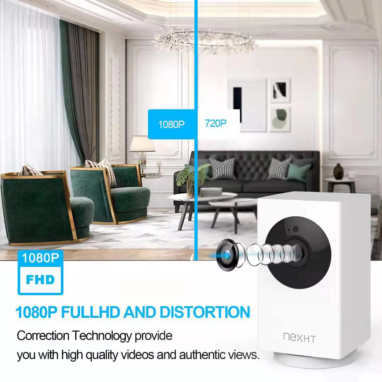 ugoho.me 1080P Pan Digital Tilt / 8X Zoom Indoor Smart Camera Wi-Fi Viewing for Baby, Elderly, Pet, with Night Vision, Motion Detection, and 2-Way Audio (86336)