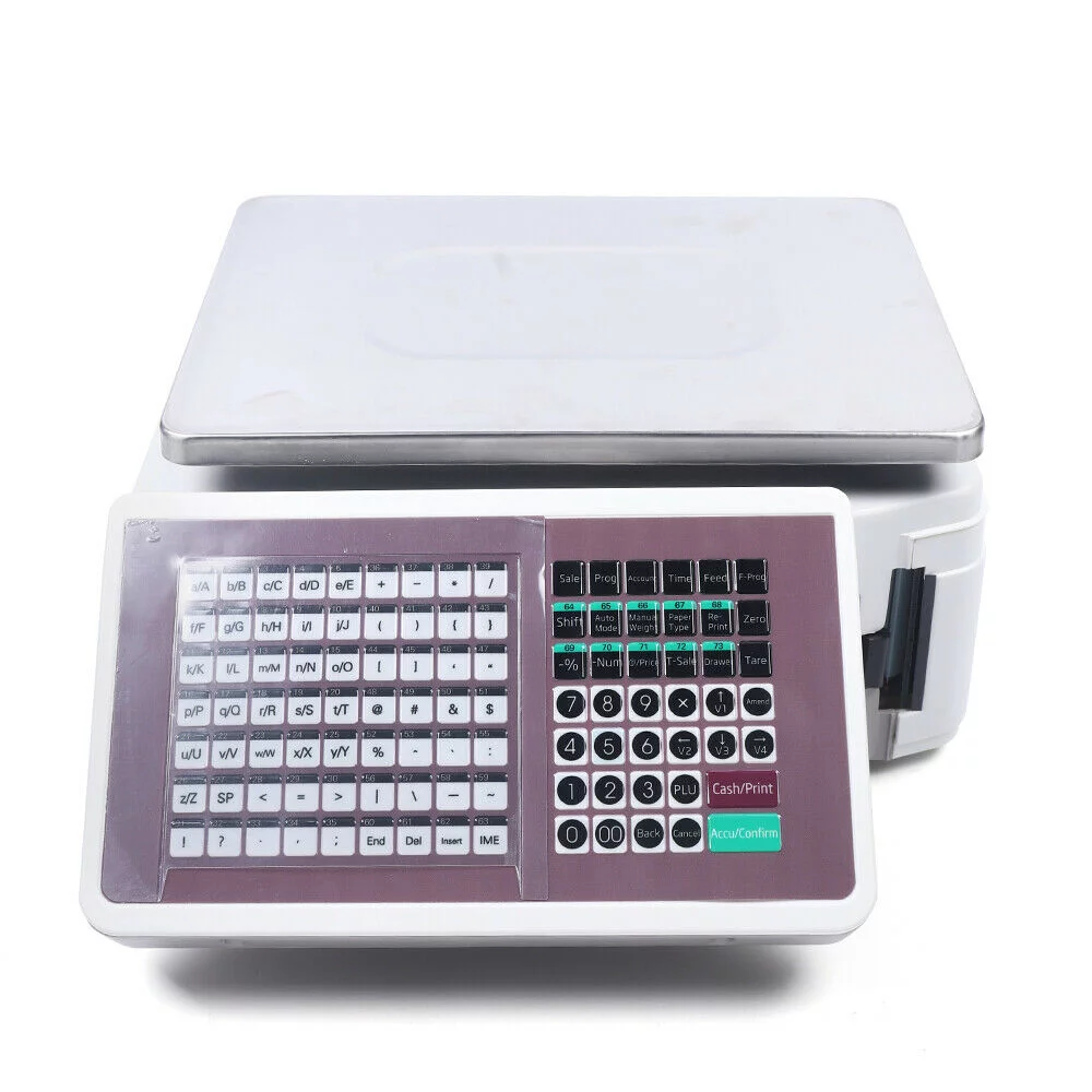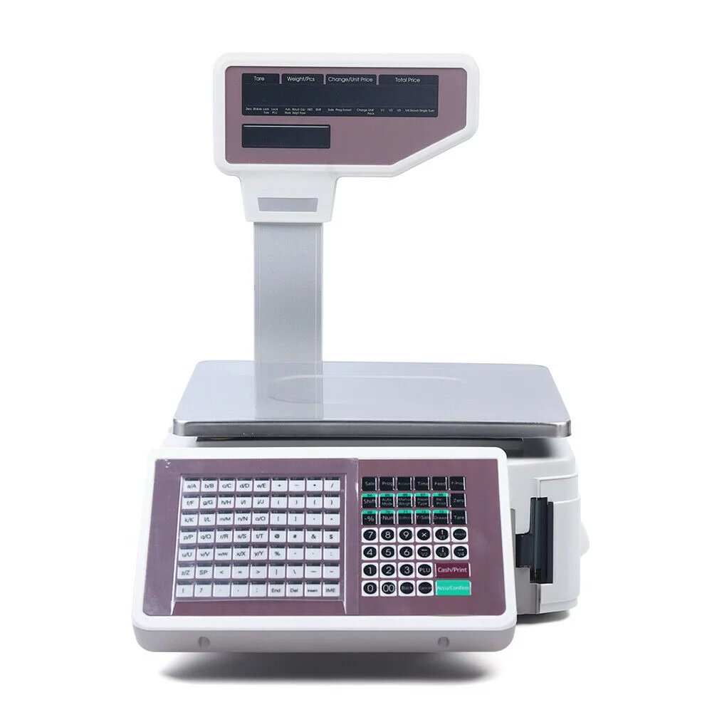Price Computing Scale with Thermal Label Printer Up to 66lb Weighing Range Pole Display Scale for Supermarket (with Mobile APP) Electronic Weight Scale Digital Price Computing Thermal Label Printer