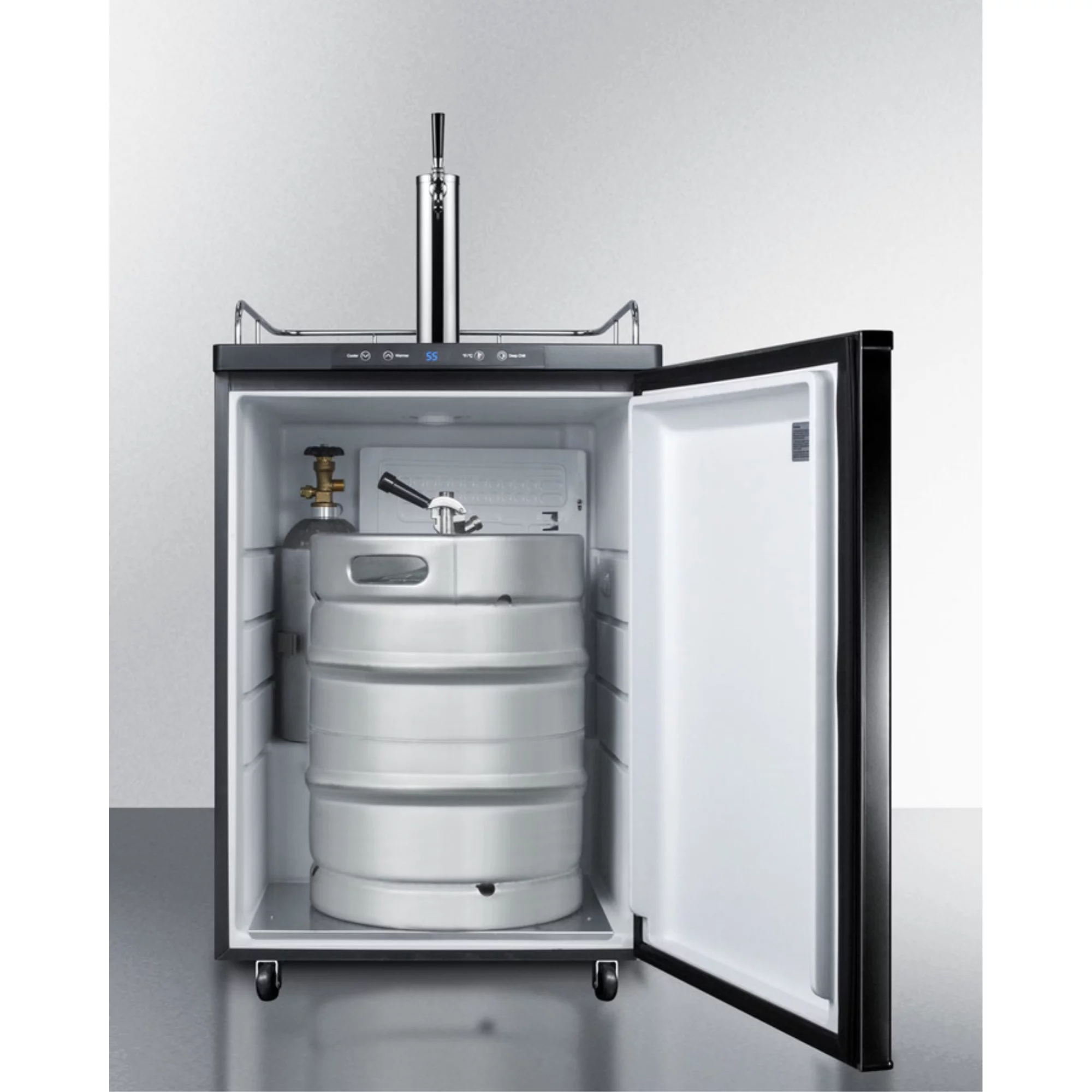 Freestanding commercially listed beer dispenser, auto defrost with digital thermostat and black exterior finish