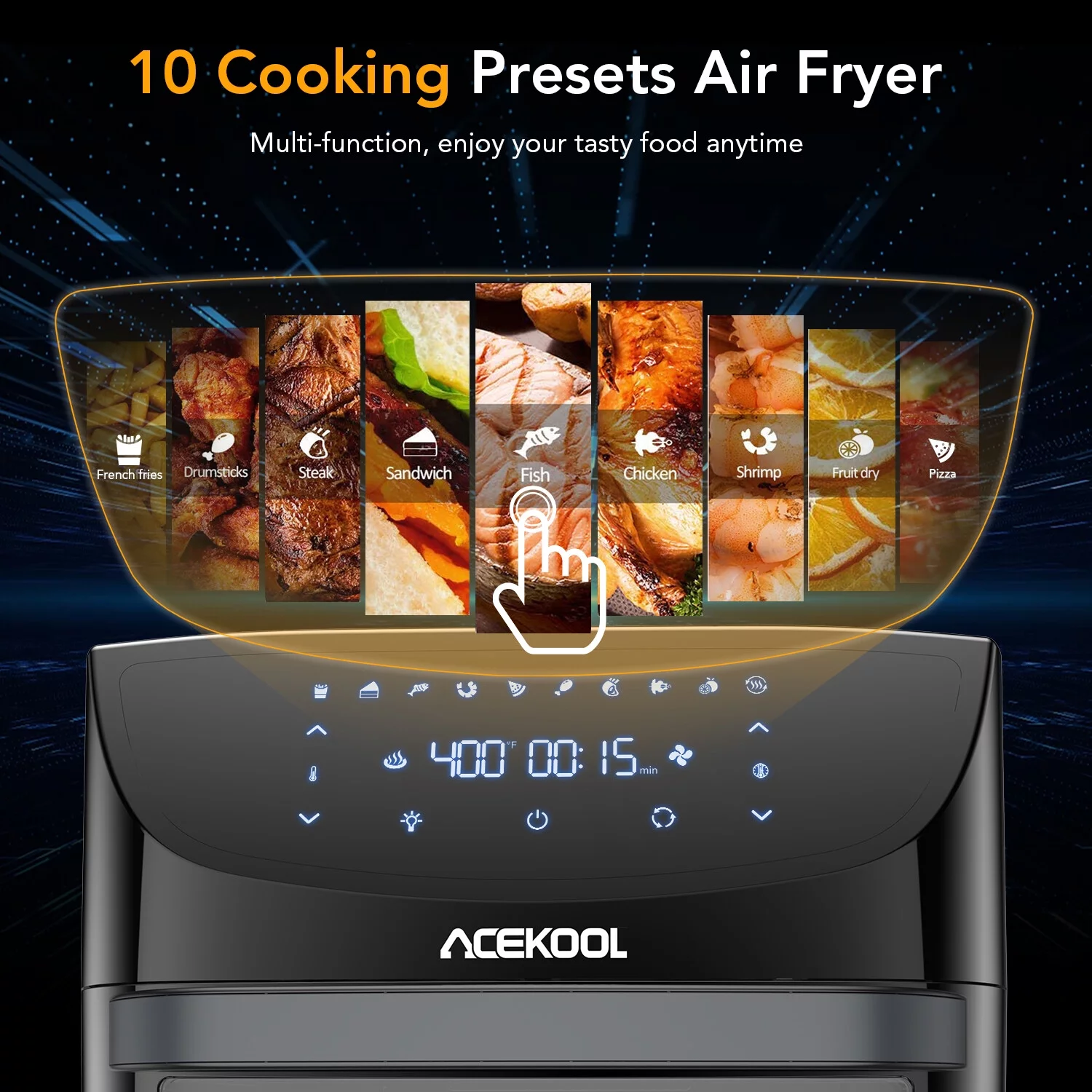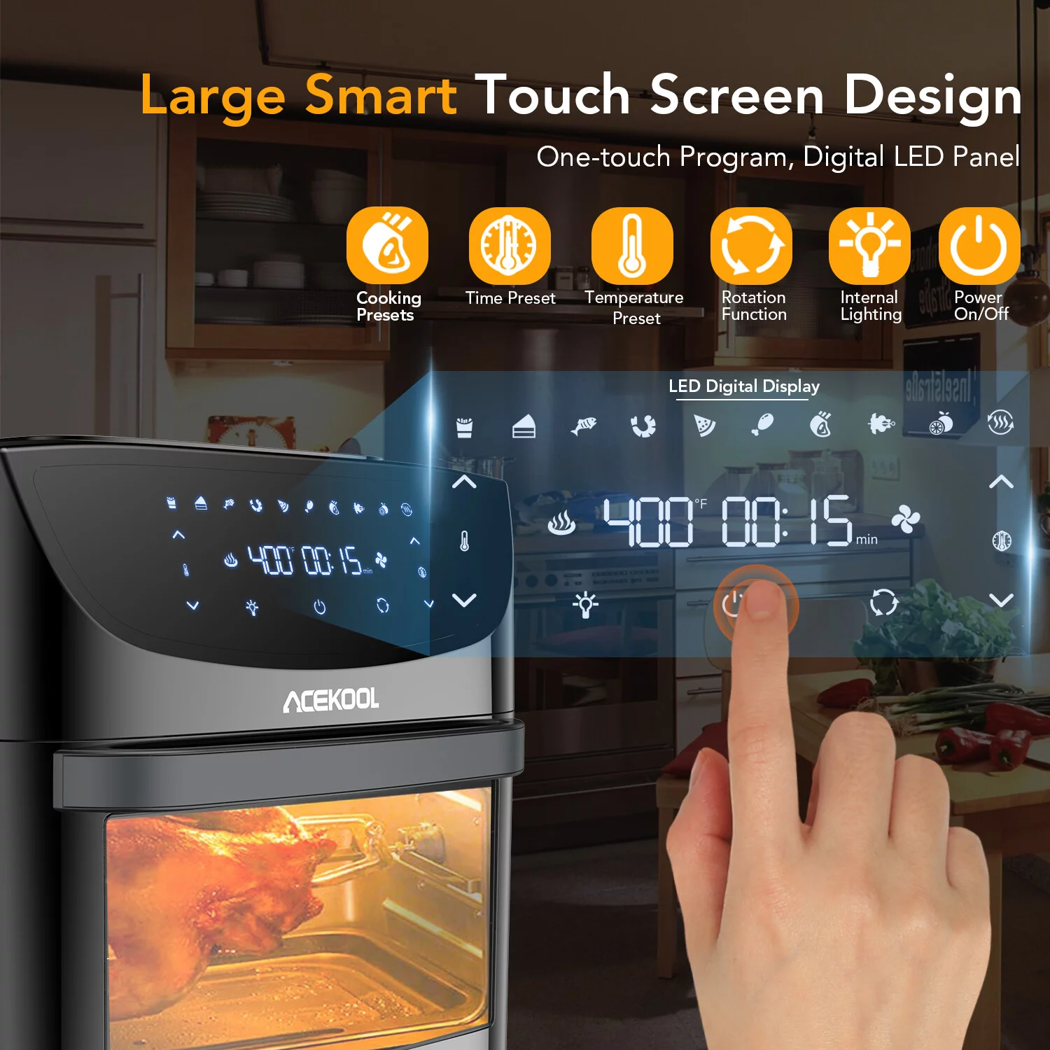 Acekool 19 Qt 1800 W 10-in-1 Digital Air Fryer Countertop Oven