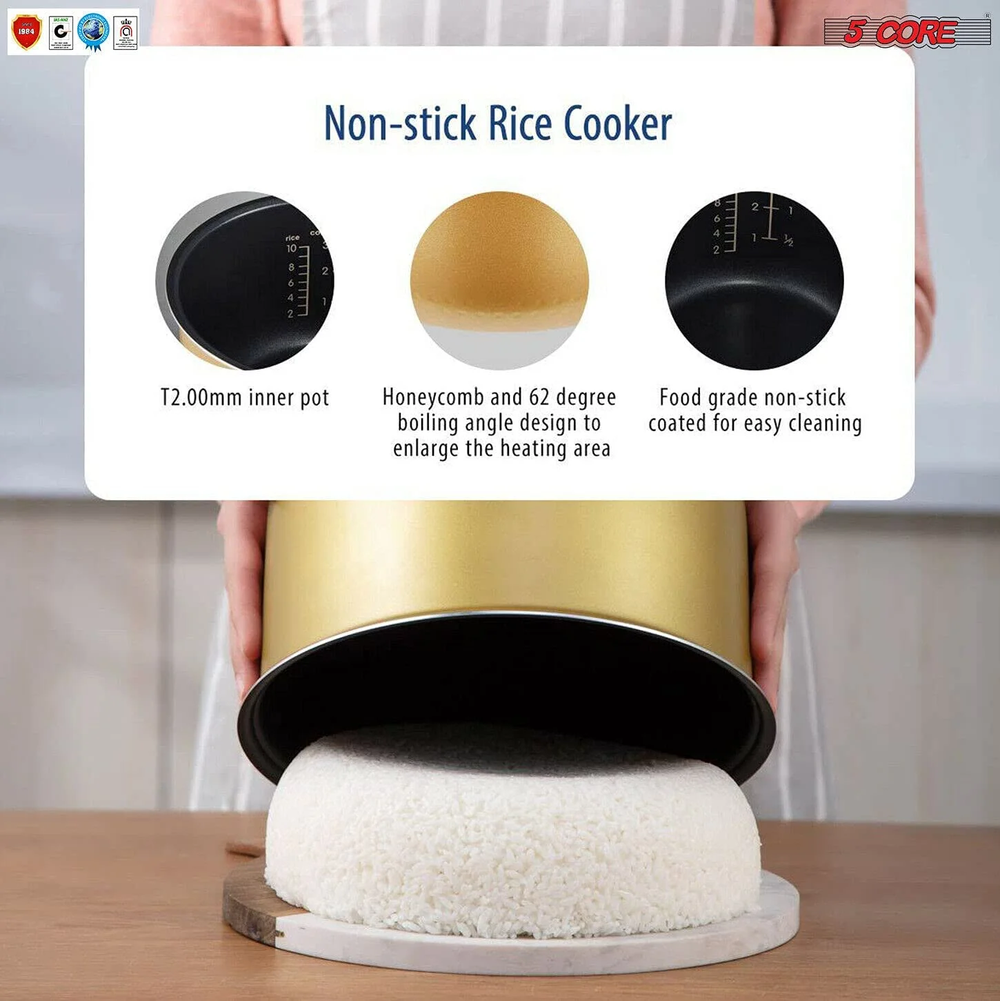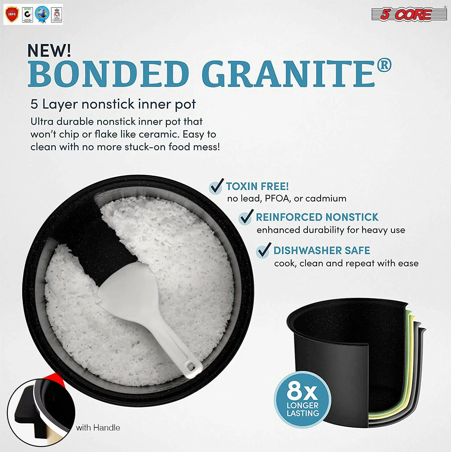 5 Core 5.3Qt Asian Rice Cooker Digital Programmable 15-in-1 Ergonomic Large Touch Screen Electric Multi Cooker Slow Cooker Steamer Pot Warmer 11 Cups 24 Hour Delay Timer Auto Keep Warm Feature RC 0501