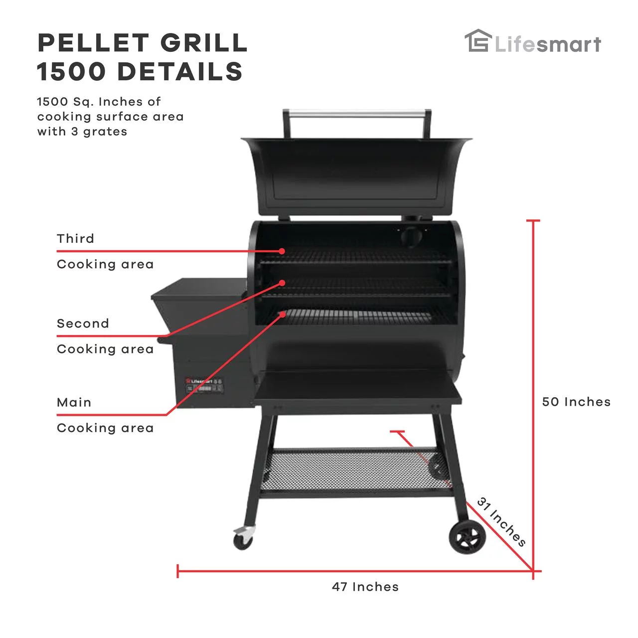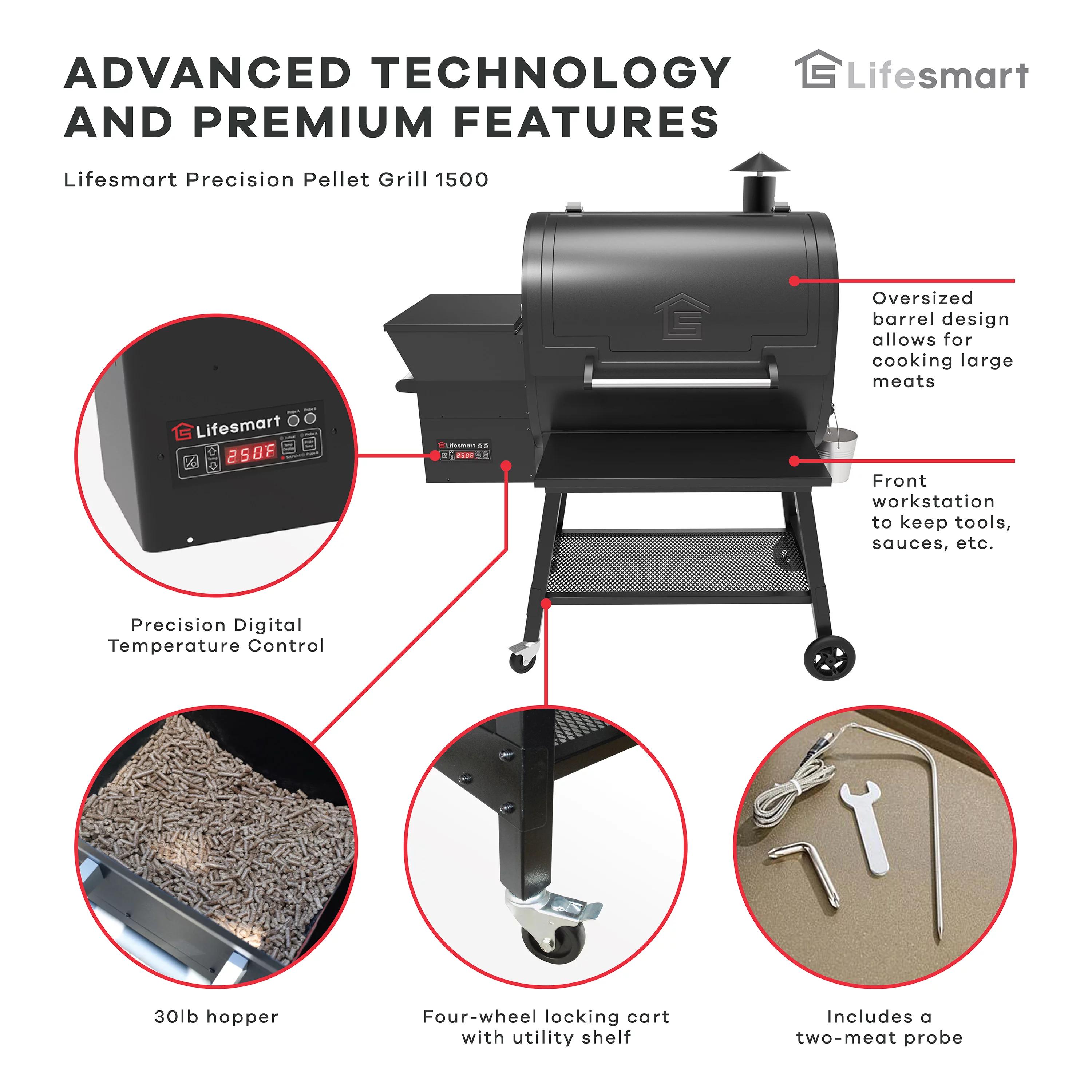 Lifesmart 1500 Square Inch Pellet Grill and Smoker with Dual Meat Probes, Precision Digital Control and 3 Cooking Racks
