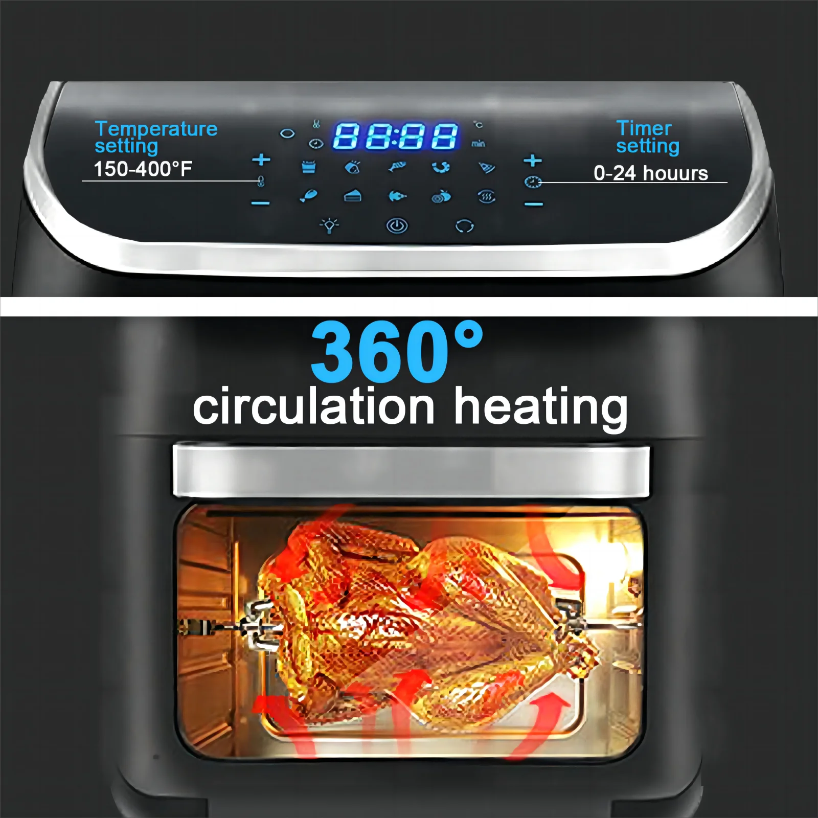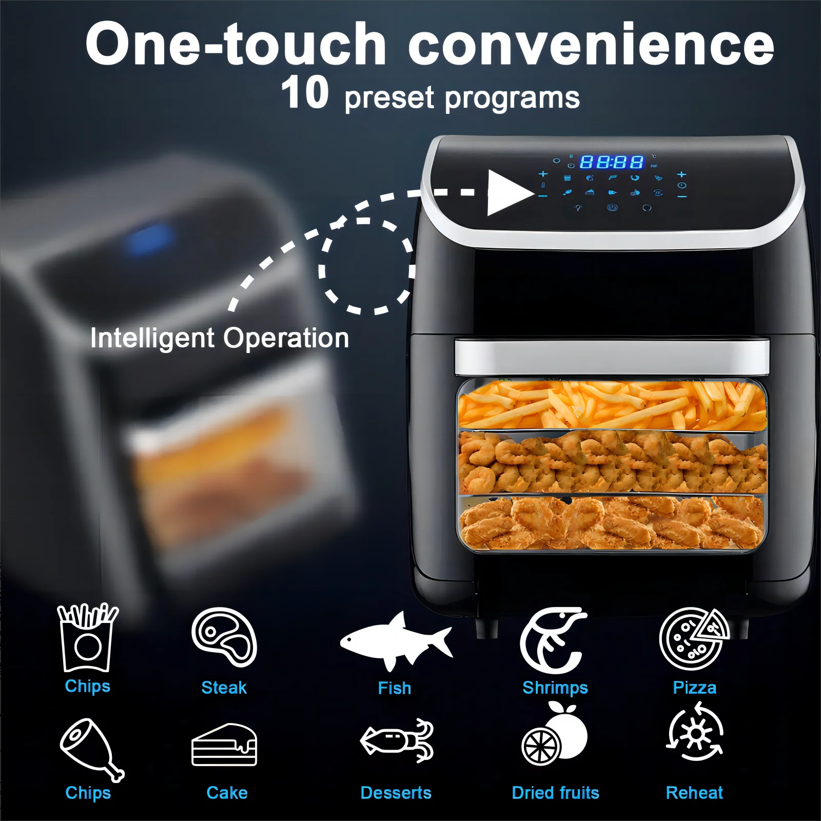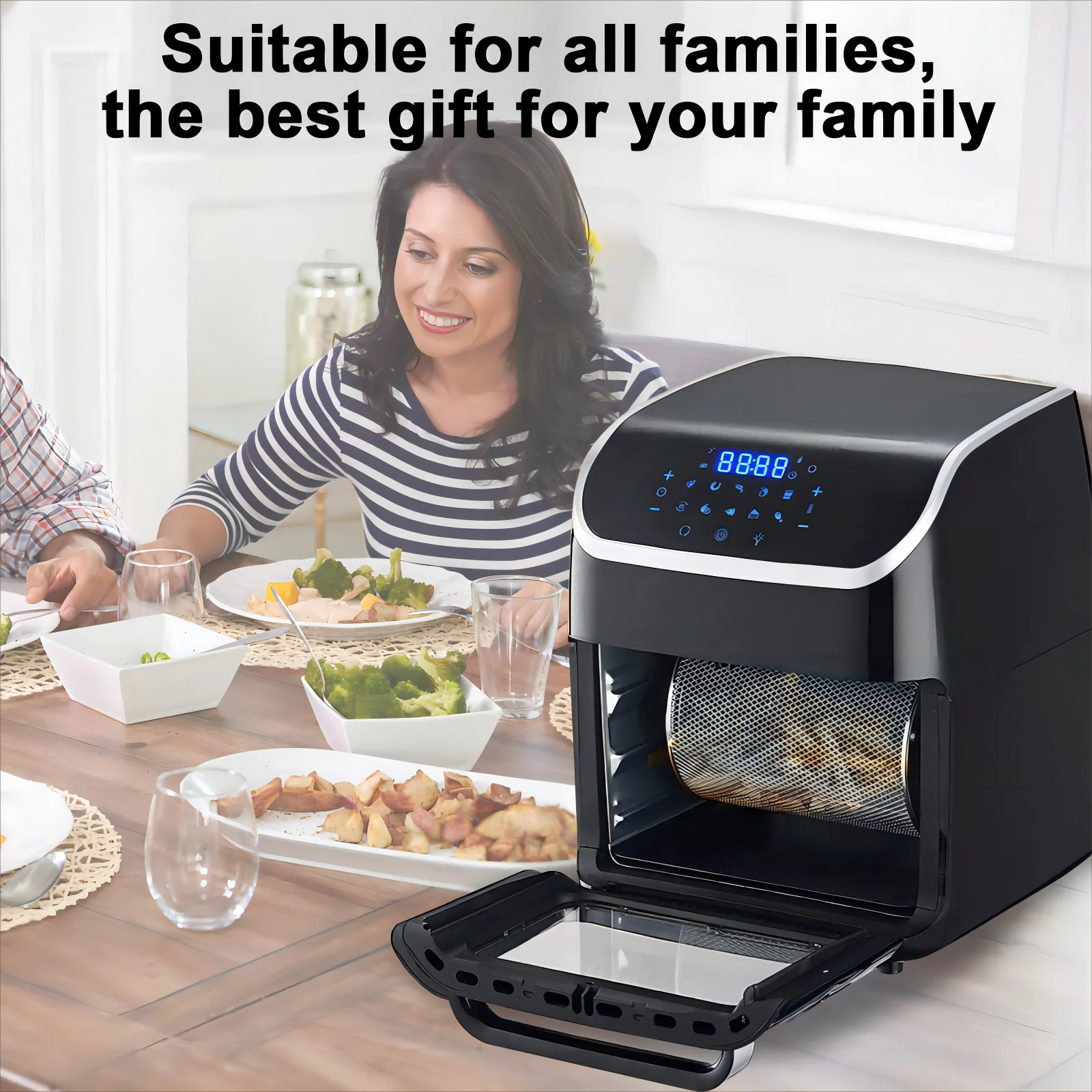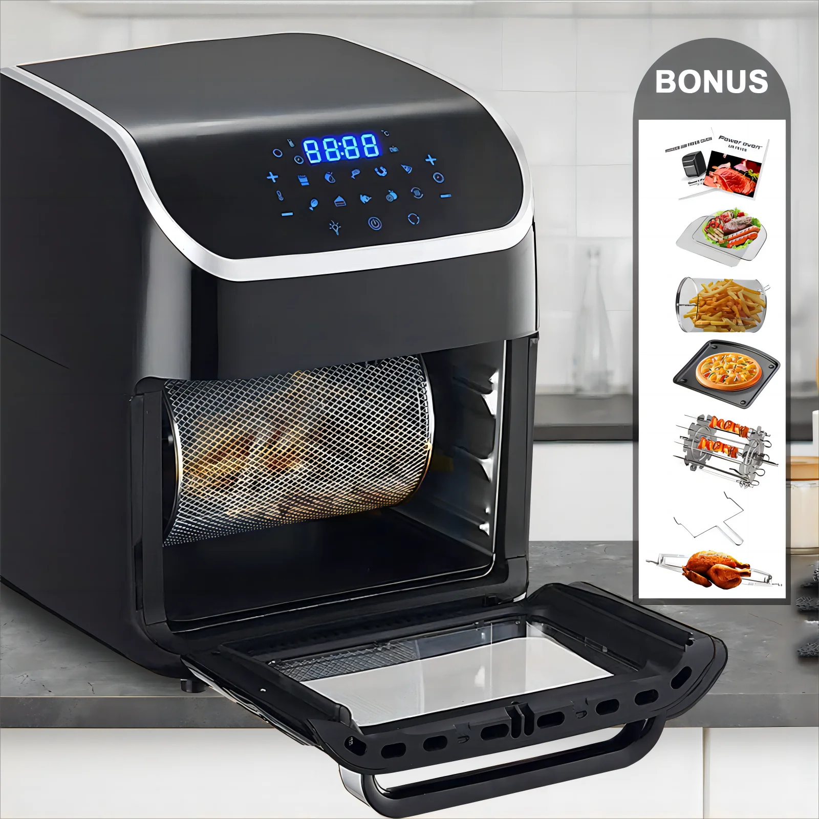 Jacgood 12L 1800W Air Fryer Oven, 10-in-1 Family-Sized Oven, Digital Air Fryer Oil Free Low Fat Healthy Cooker With Touch Screen and Temperature Control