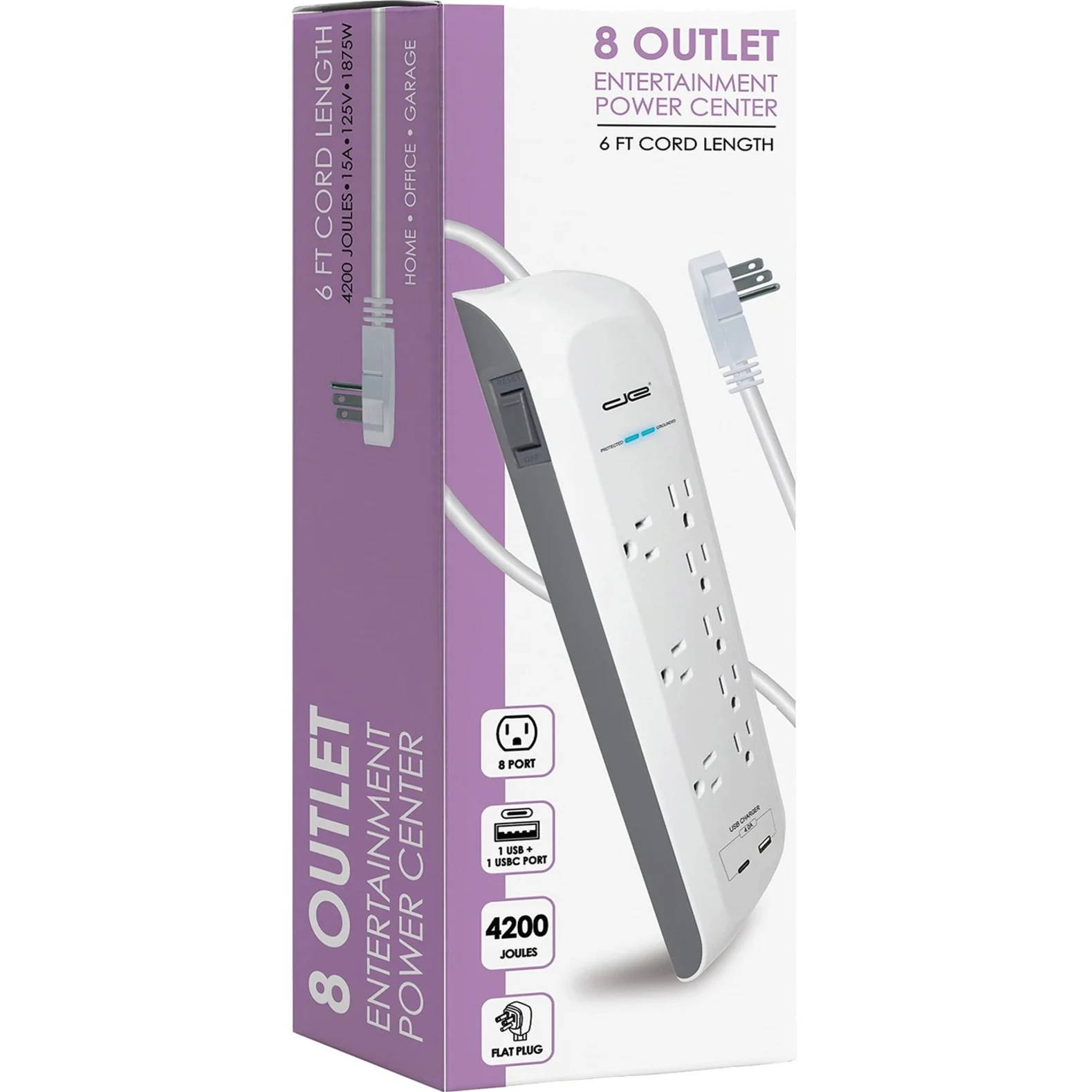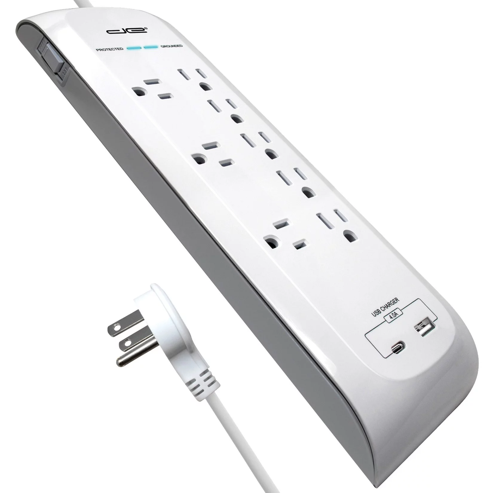Digital Energy DEE1-1116 8-Outlet USB-A and USB-C Surge Protector Power Strip (White, 6-Foot Cord)