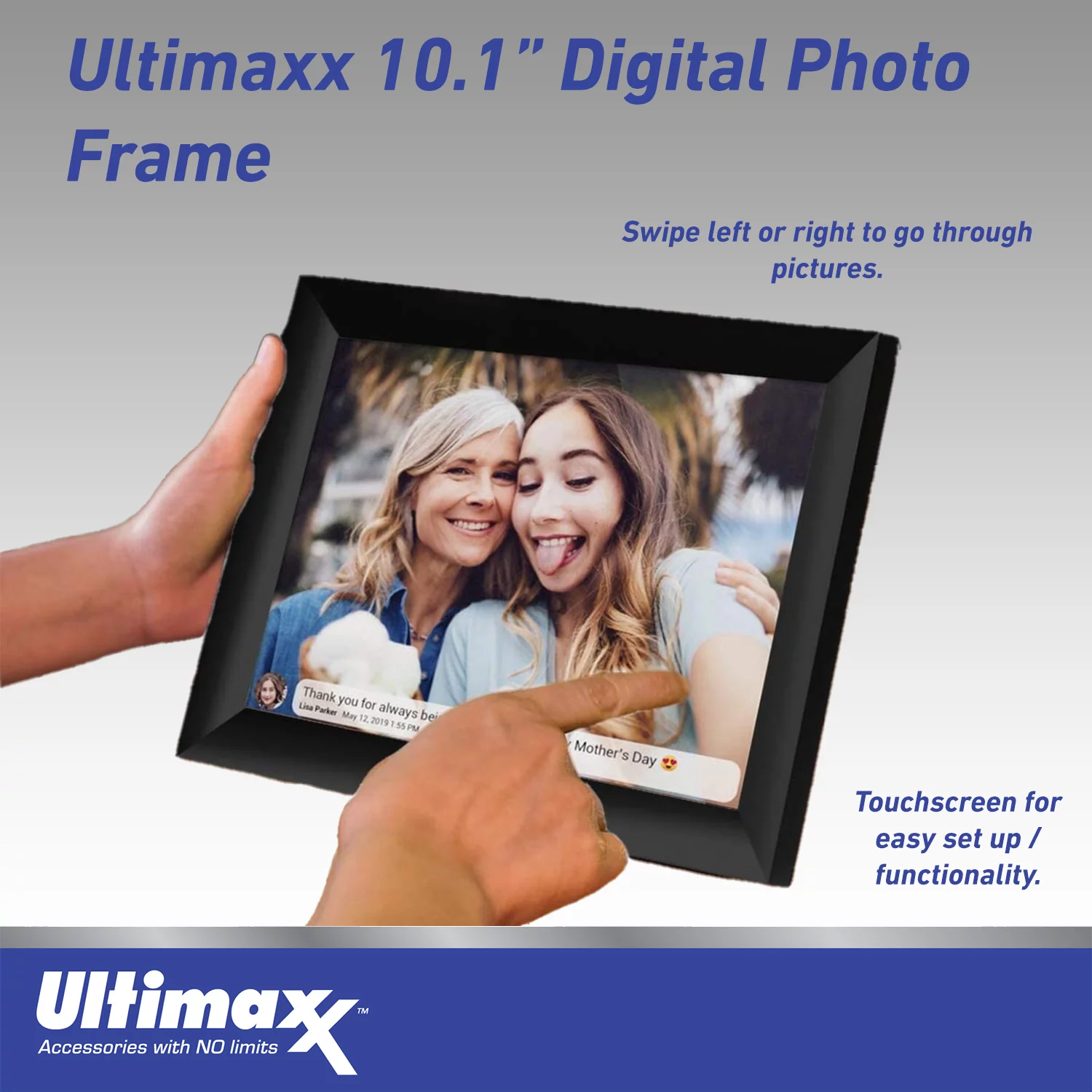 Ultimaxx Wireless Digital Photo Frame Electronic Photo Storage, 1280x800 IPS LCD Touch Screen 10.1"