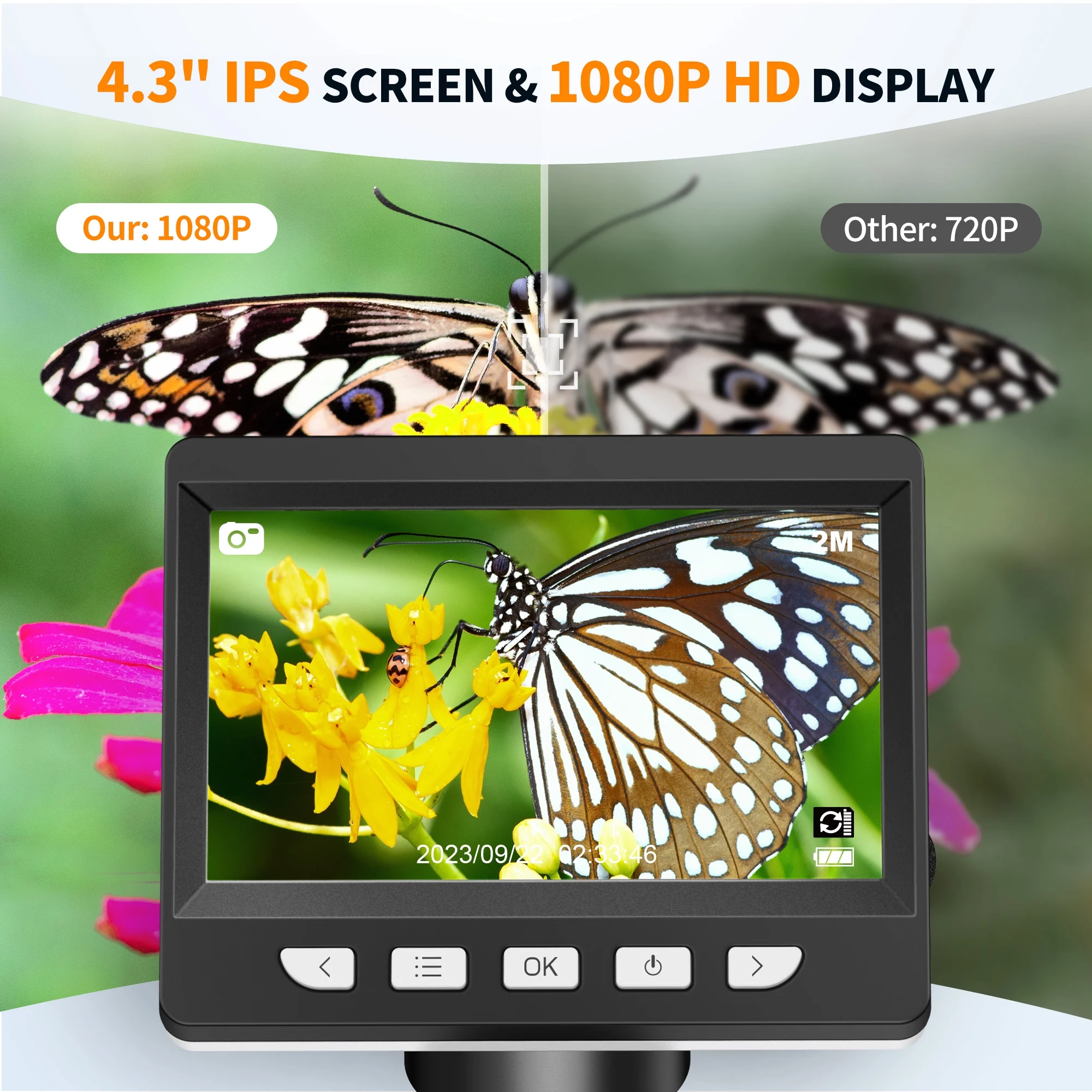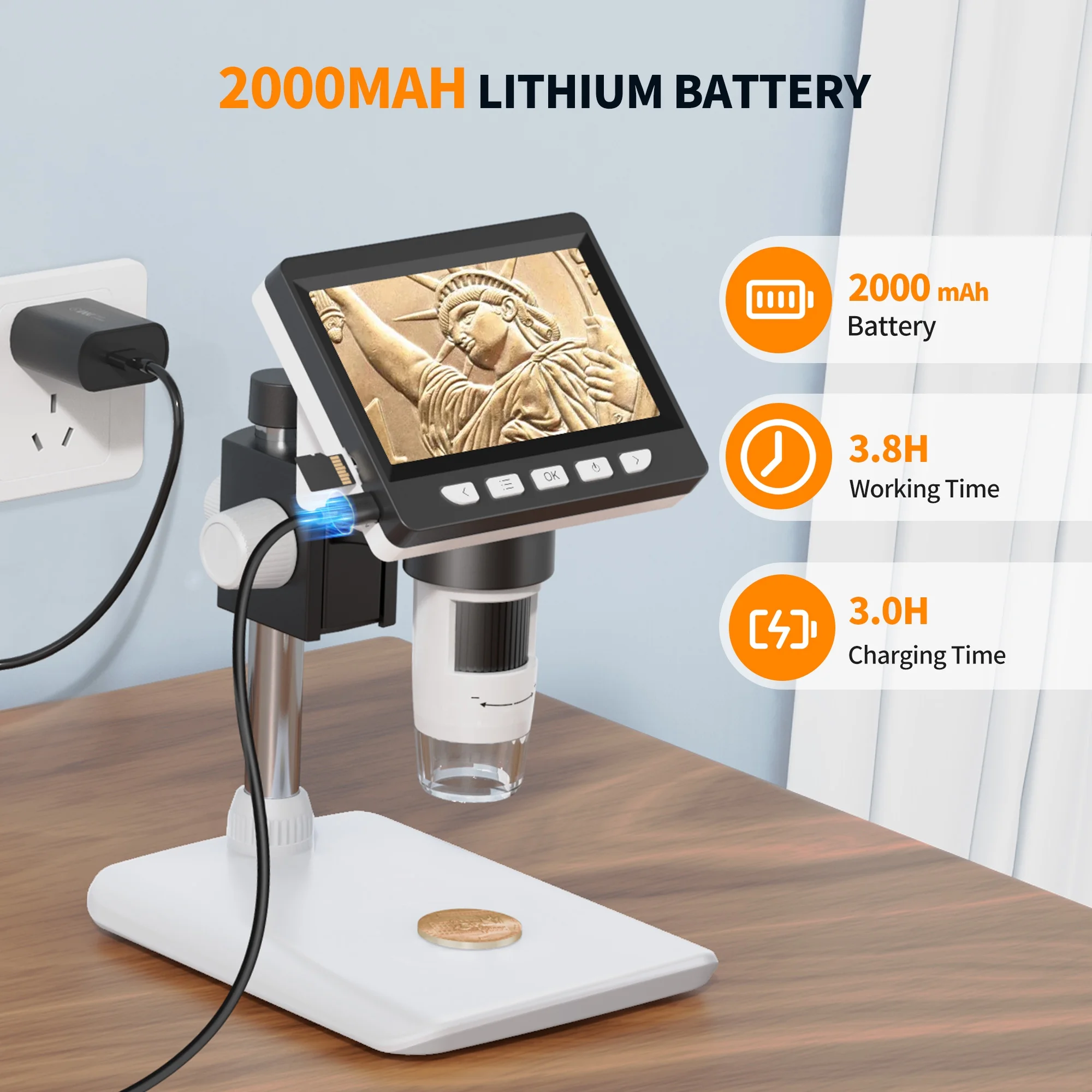 Digital Microscope, Ruaiok 4.3 Inch IPS Screen 1-1000X Magnification Zoom Coin Microscope with 8 Adjustable LED Lights,10MP Camera Video Recorder