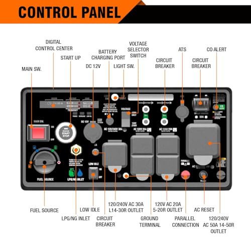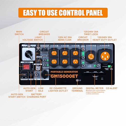 GENMAX 15000W Tri-Fuel Portable Generator - 2025 Model with ATS, CO Sensor, Digital Display & 50A Output Perfect for Home Backup, Construction Sites & Emergency Power (GM15000ET)