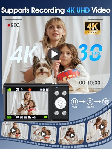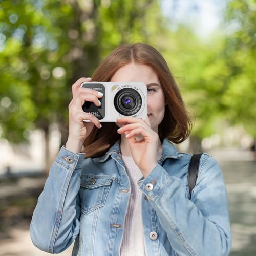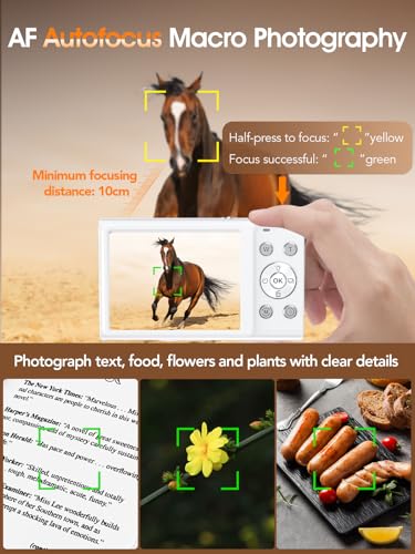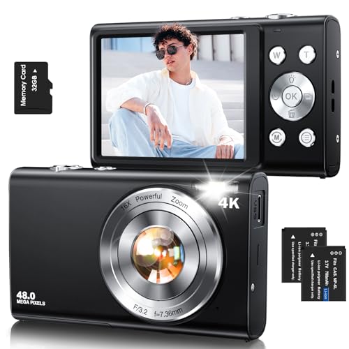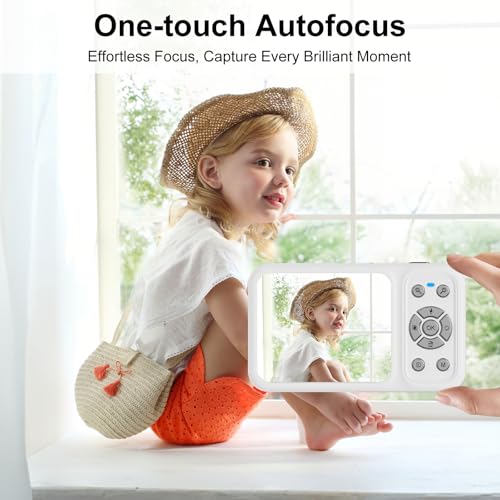 Digital Camera,Autofocus 4K Vlogging Camera for Photography with 32GB Card,48MP Portable Compact Point and Shoot Digital Camera for Teens Adult Beginner with 16X Zoom,Anti-Shake,2 Batteries(White)