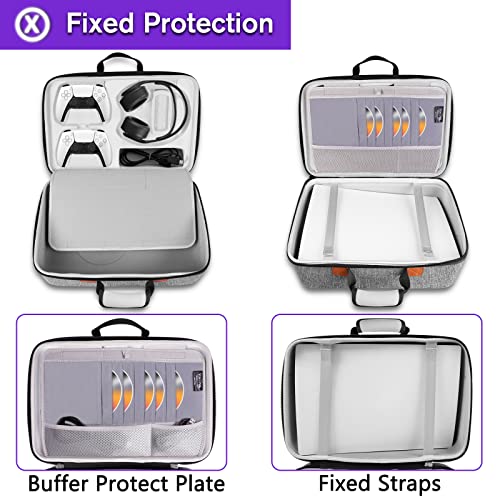 YOREPEK Hard Shell Carrying Case Compatible with PS5, PS5 Pro, Travel Protective Bag Suitable for Playstation 5 Digital Edition, Console, Controllers, Headset and Gaming Accessories, Grey
