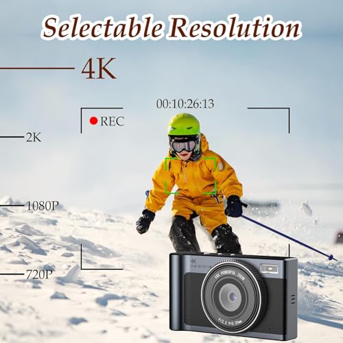 Forc Digital Camera,4K Camara de Fotos with 64GB Card,18X Zoom Anti-Shake Video,Vintage Camera for Camping Traveling Vlogging &Teen Parties,Portable for Kids Girls Boys Gifts