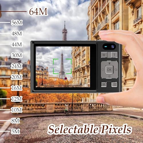 Digital Camera, 4K 64MP Dual Screens Camera, 18X Zoom, Point and Shoot Digital Camera with 64GB TF Card & 2 Batteries, Portable Rechargeable Small Camera for Kids Teens Adult, Black