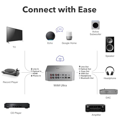 WiiM Ultra Music Streamer & Digital Preamp | 3.5" Touchscreen, Compatible with Google Cast & Alexa, Stream Spotify, Amazon Music, Tidal & More | HDMI ARC, Phono Input & Headphone Output | Space Gray