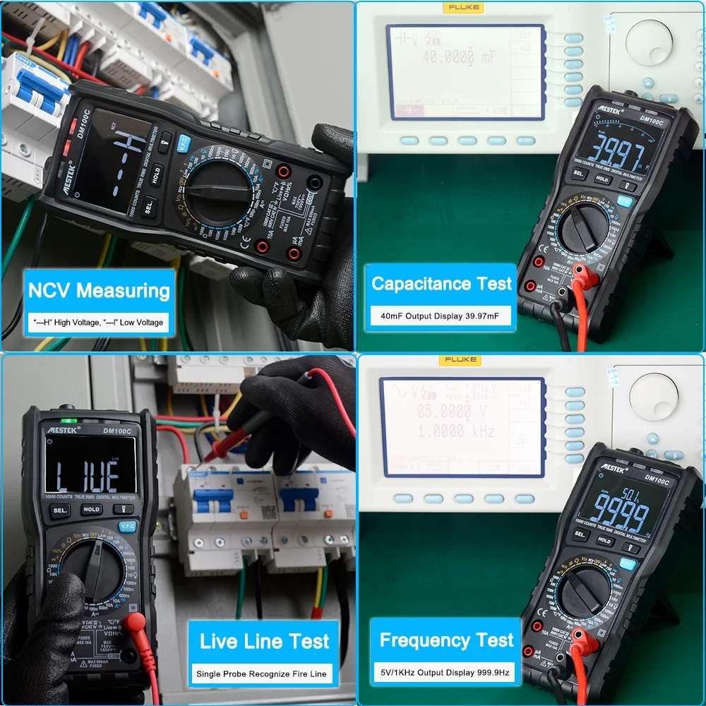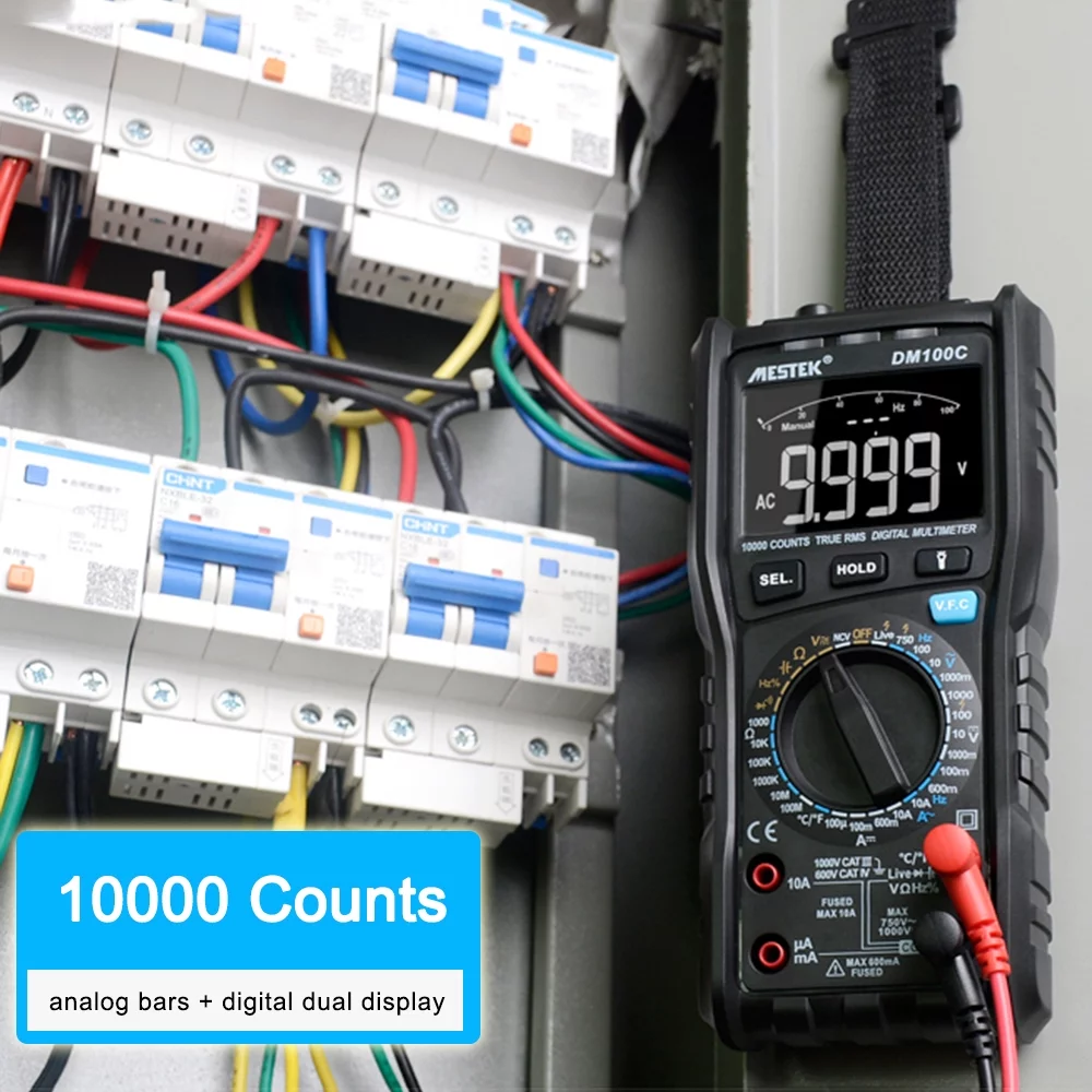MESTEK 10000 Counts True RMS Multifunctional Digital Multimeter Measuring AC/DC Voltage Current Resistance Capacitance Frequency Diode Temperature Frequency NCV Live Line Tester -burn Fuse Alarm Mult