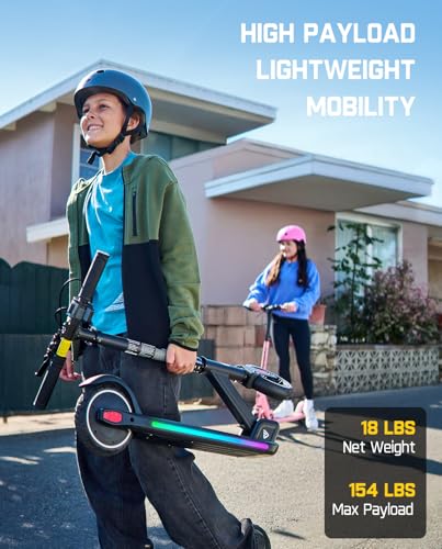 FanttikRide T9 Apex Electric Scooter for Kids 4.3-5.6 ft, 200 W Motor, LED Colorful Lights with Bluetooth Music Speaker, 7/10/12 MPH Digital Display, Adjustable Height, Foldable, Up to 40 mins