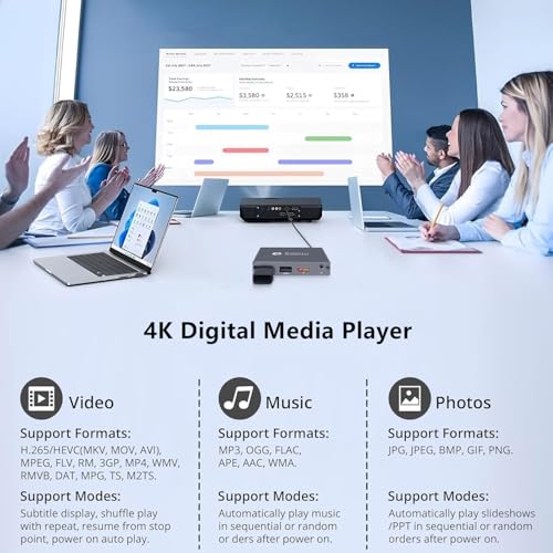 4K Digital Media Player, TV MP4 Video Player with HDMI/Optical/AV Output, Digital Signage Mini HD Media Players for USB Drive/Micro SD Card, Auto Playback, H.265/HEVC