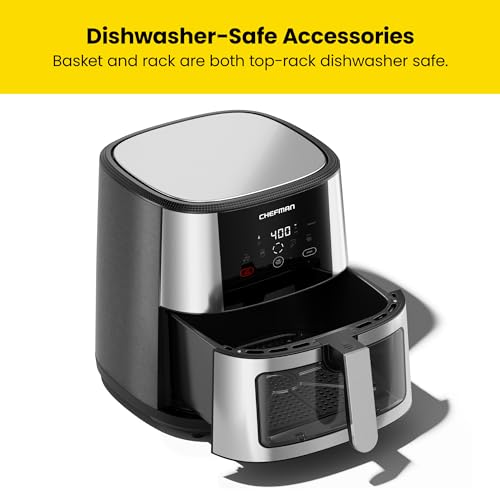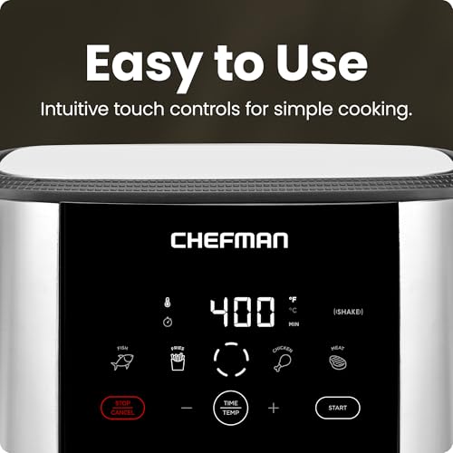 Chefman TurboFry® Touch Air Fryer, XL 8-Qt Family Size, One-Touch Digital Control Presets, French Fries, Chicken, Meat, Fish, Nonstick Dishwasher-Safe Parts, Automatic Shutoff, Stainless Steel