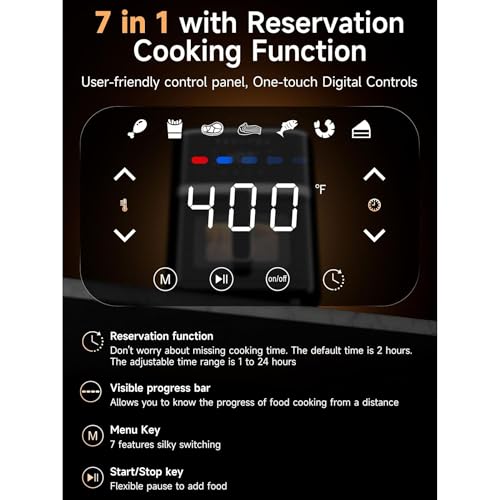 6QT Large Air Fryer, 12-in-1 Digital Airfryer with Clear Window, Roast, Reheat, Dehydrate, Bake, Steam with 400F and More, Dishwasher Safe, Nonstick, Fit for Family of 2-5, Gray
