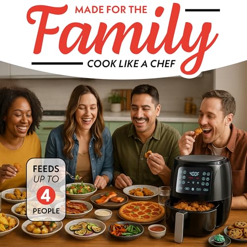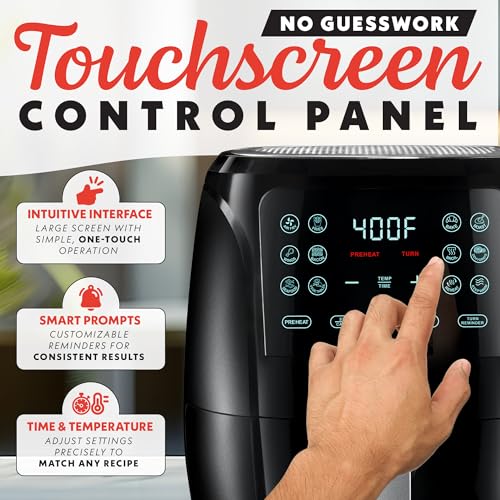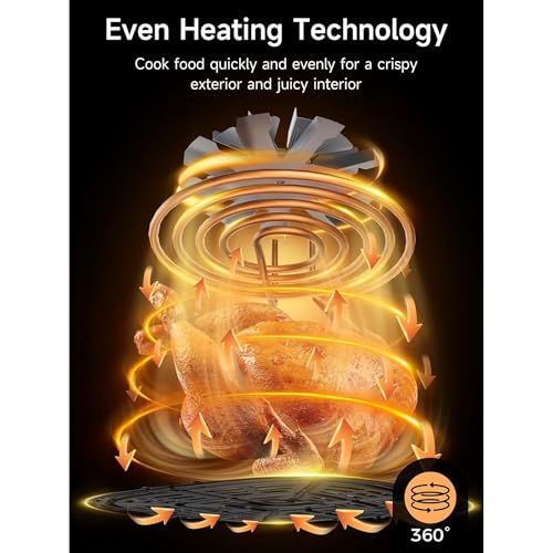 8QT Easy View Non Toxic Air Fryer, 1750W, 6-in-1 Non-drawer Digital Air Fryer, Precise Temp & Timer Control and Pre-Set Timer, Auto Shutoff, Roast, Bake, Air Fry, Broil, Reheat & Dehydrate, Black