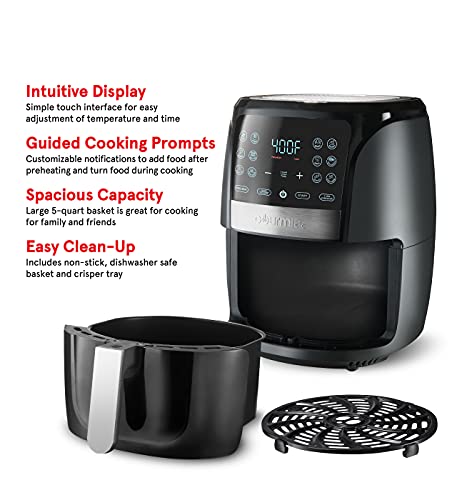 DASH Tasti-Crisp™ Electric Air Fryer Oven, 2.6 Qt., Grey – Compact Air Fryer for Healthier Food in Minutes, Ideal for Small Spaces - Auto Shut Off, Digital, 1000-Watt