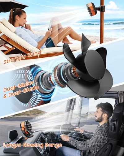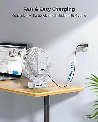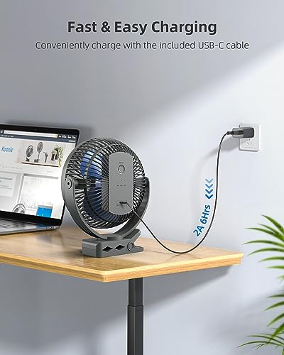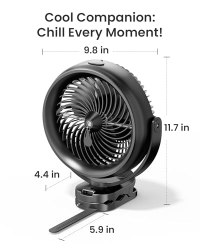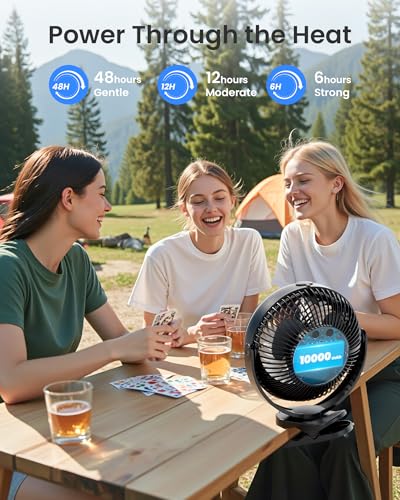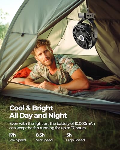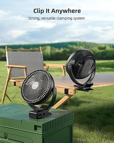 Koonie 10000mAh Portable Clip on Fan with LED Lantern and Hook, 8'' Battery Operated Desk Fan, Quiet Camping Fan with LED Digital Display, 360° Rotation & 3 Speeds for Travel Tent Gym Treadmill