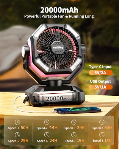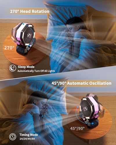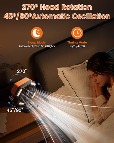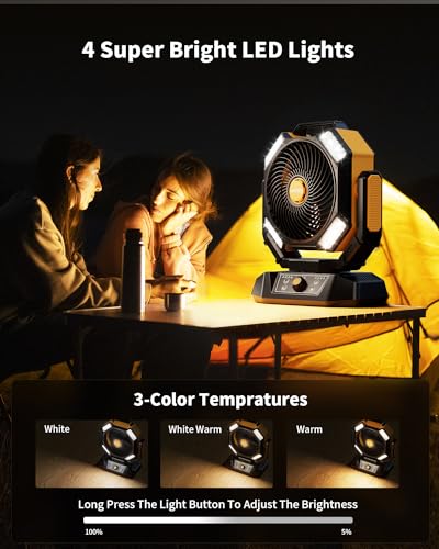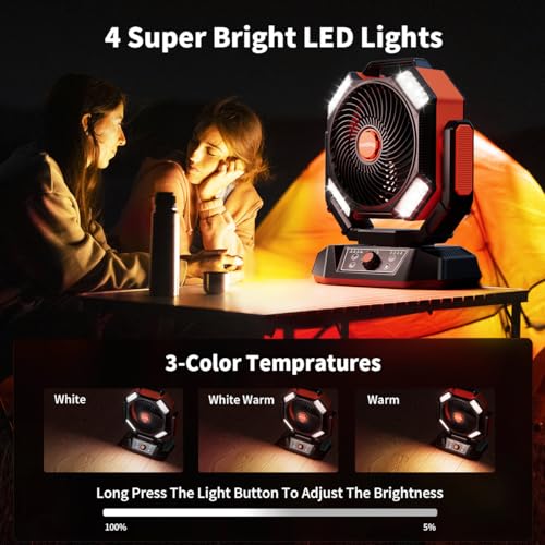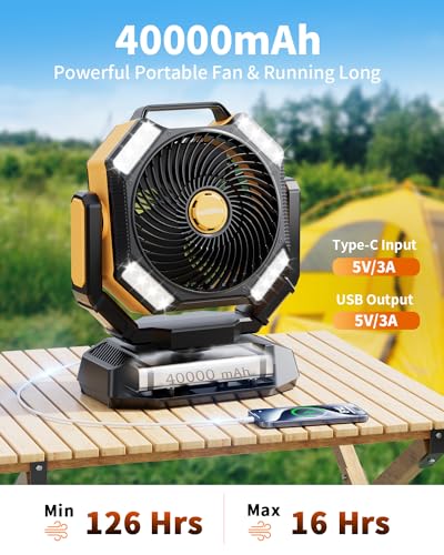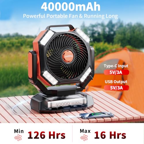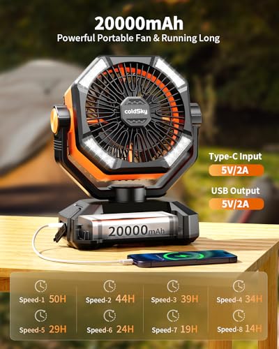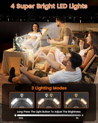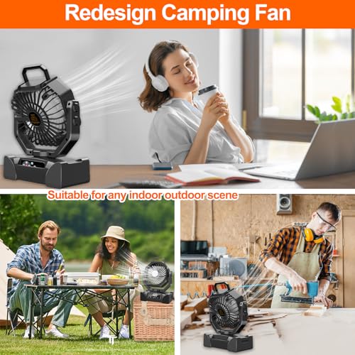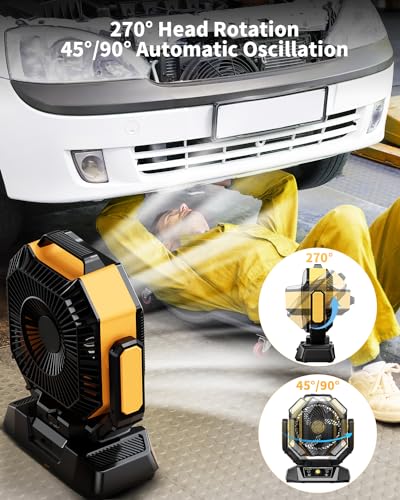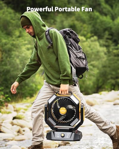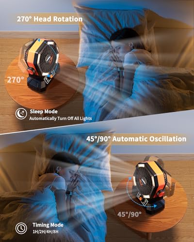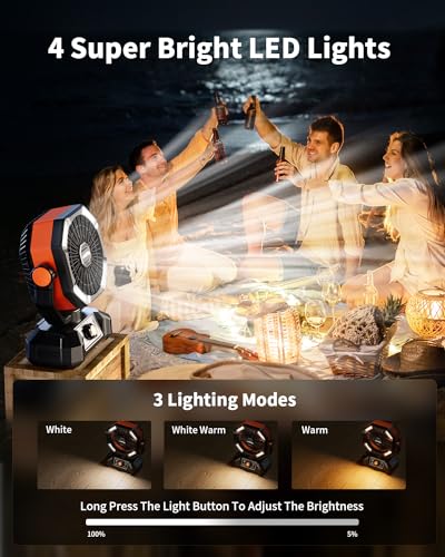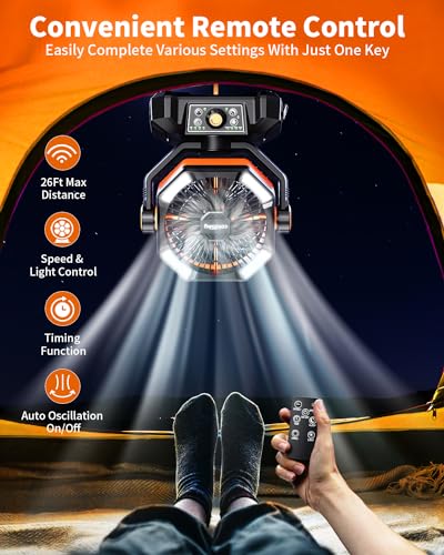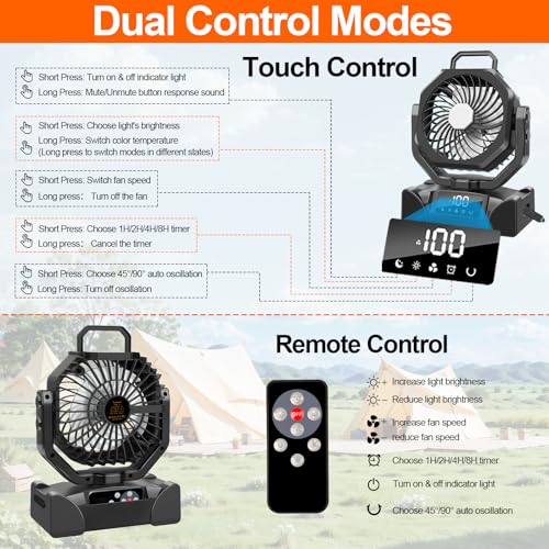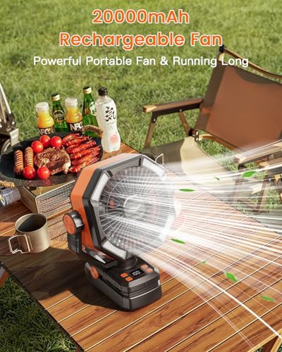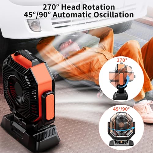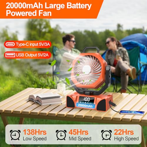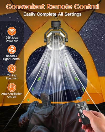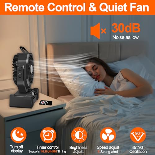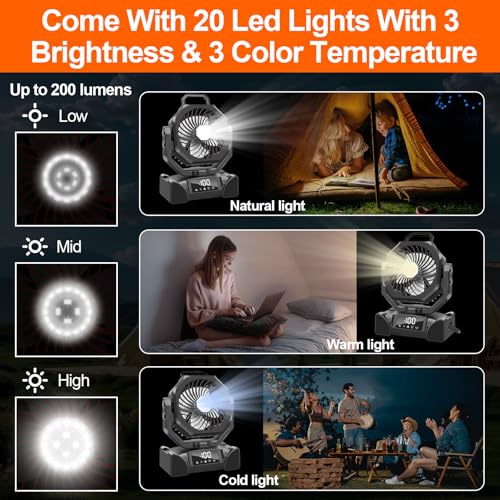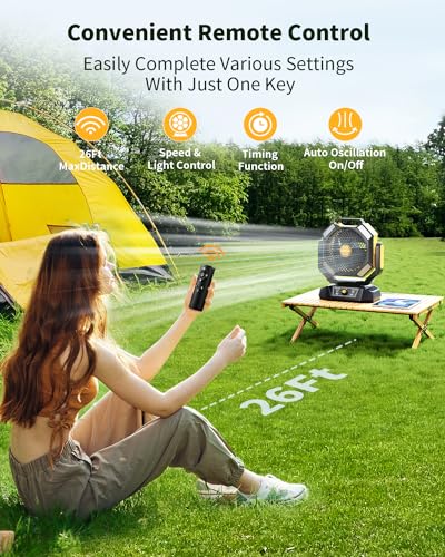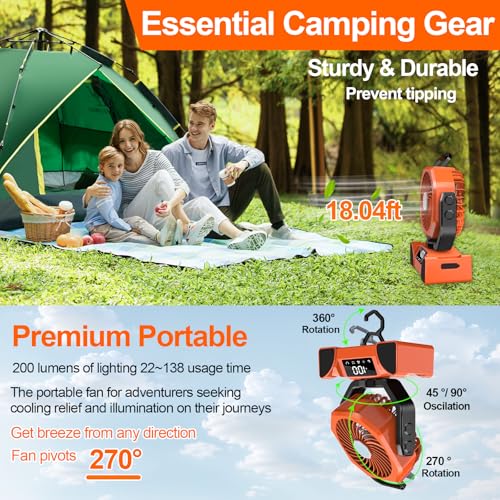 Portable Camping Fan Battery Operated Powered Fan with Remote Control & LED Lantern,20000mAh Battery Rechargeable,LED Digital Display,Oscillate,Timer,Rotation Hanging Hook for Tents Travel - Orange