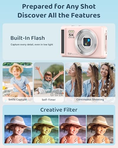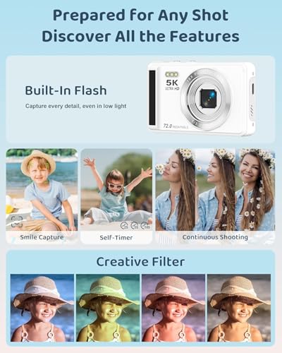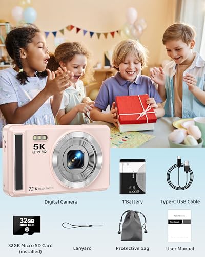 5K Digital Camera - 72MP UHD Digital Cameras for Photography - Autofocus Point and Shoot Small Camera with Flash for Kids - 2.8 Inch Screen Compact Portable Vlogging Camara with 16X Zoom, 32GB SD Card