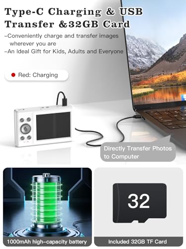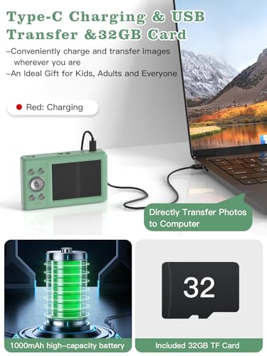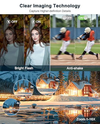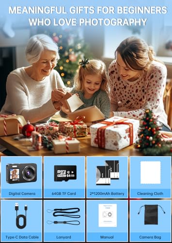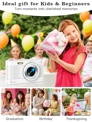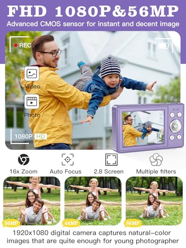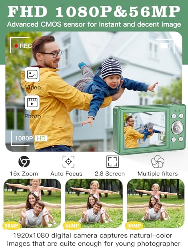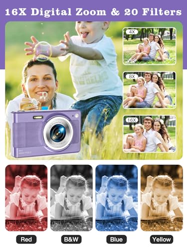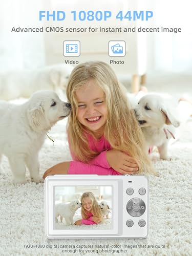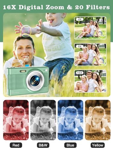 Digital Camera, FHD 1080P Camera, Digital Point and Shoot Camera with 16X Zoom Anti Shake, Compact Small Camera for Boys Girls Kids