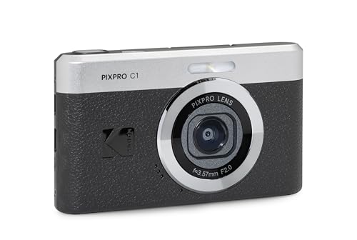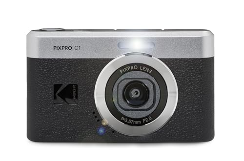 KODAK PIXPRO C1 Friendly Zoom Digital Camera - 13MP Compact Point and Shoot with 2.8” 180° Tilt LCD Flip Screen, Retro Vintage Design with 4X Zoom and 1080P Full HD Video for Travel, Vlogging, Black