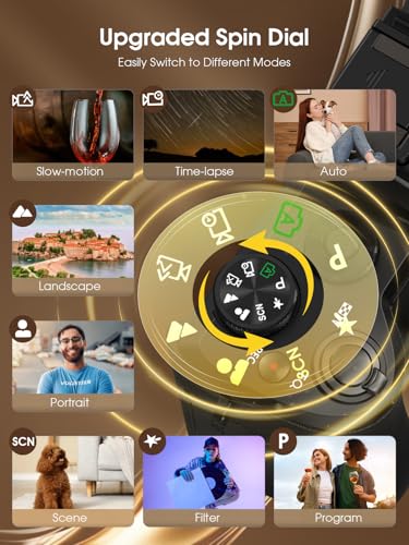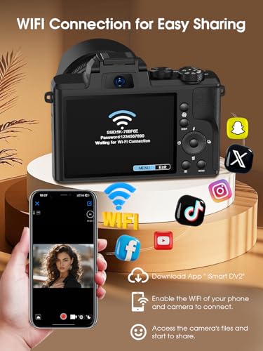 Digital Camera, 6X Optical Zoom & WiFi, 5K 30FPS 64MP Vlogging Camera, Rear and Front Cameras for Photography and Video, Autofocus & Anti-Shake, Travel Selfie for YouTube with Flash Dial 64GB Card