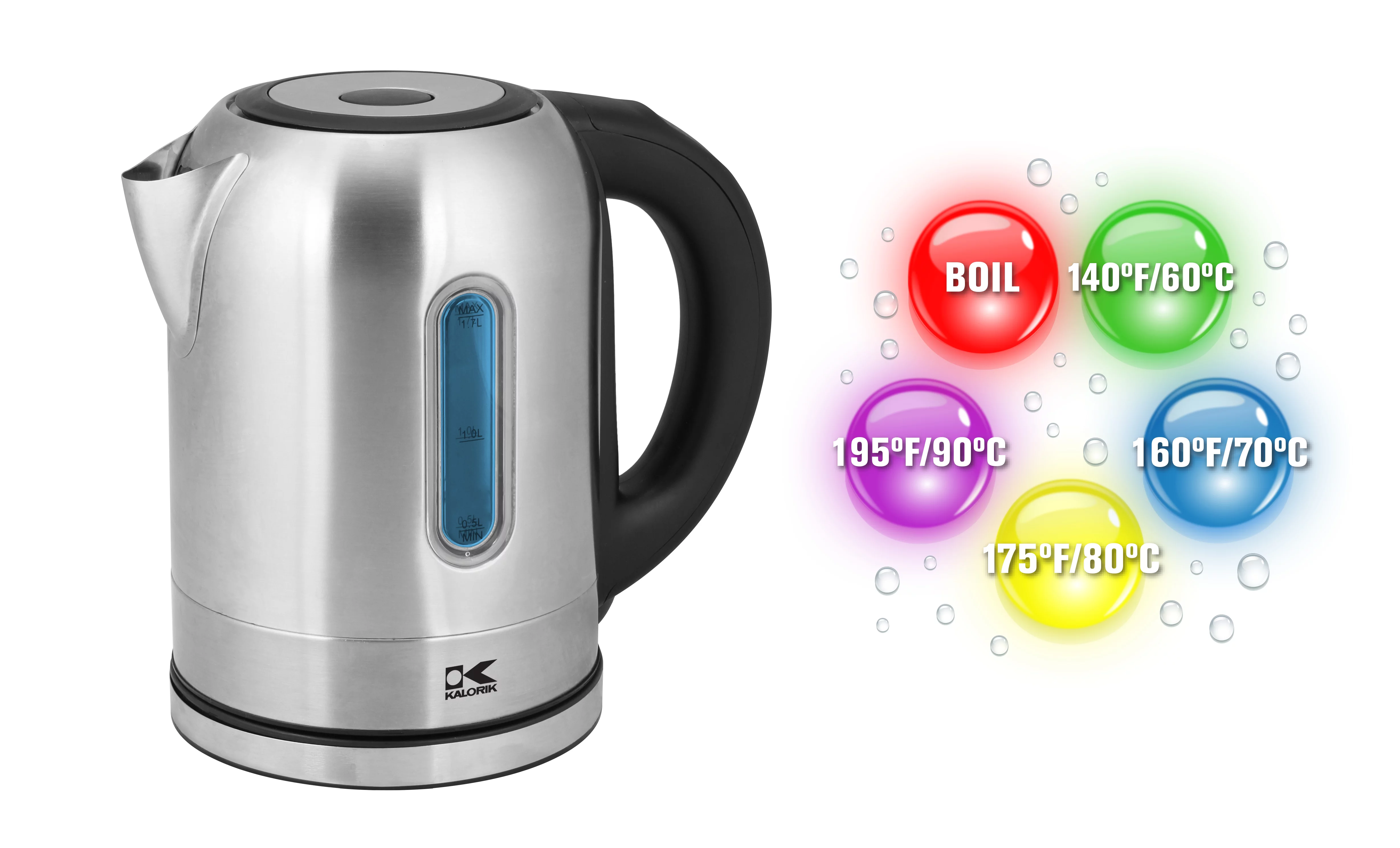 Kalorik Stainless Steel Digital Water Kettle with Color Changing LED Lights