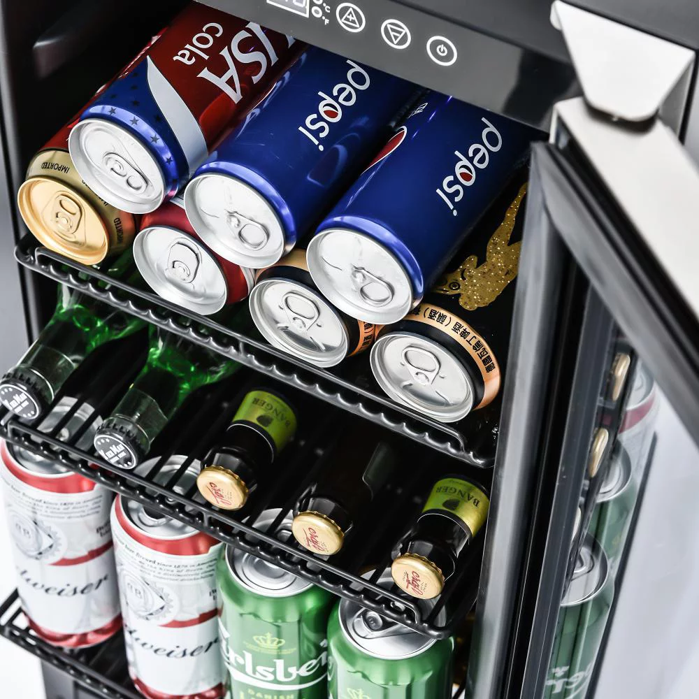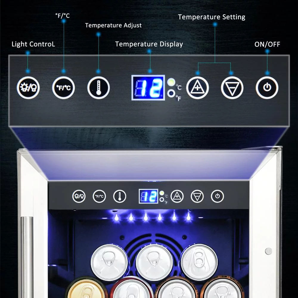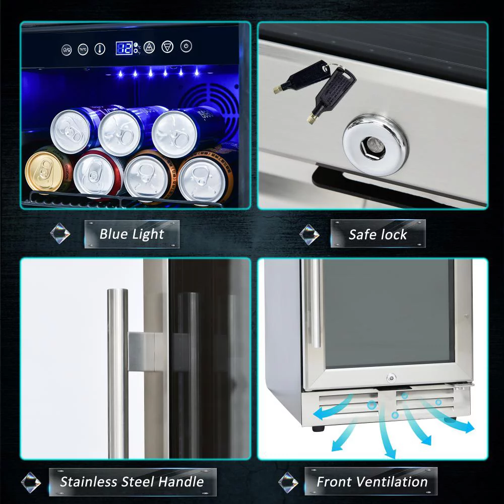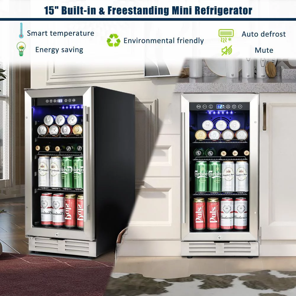 15 Inch Beverage Refrigerator Under Counter Built-in Wine Cooler Mini Fridge Clear Glass Door Digital Memory Temperature Control