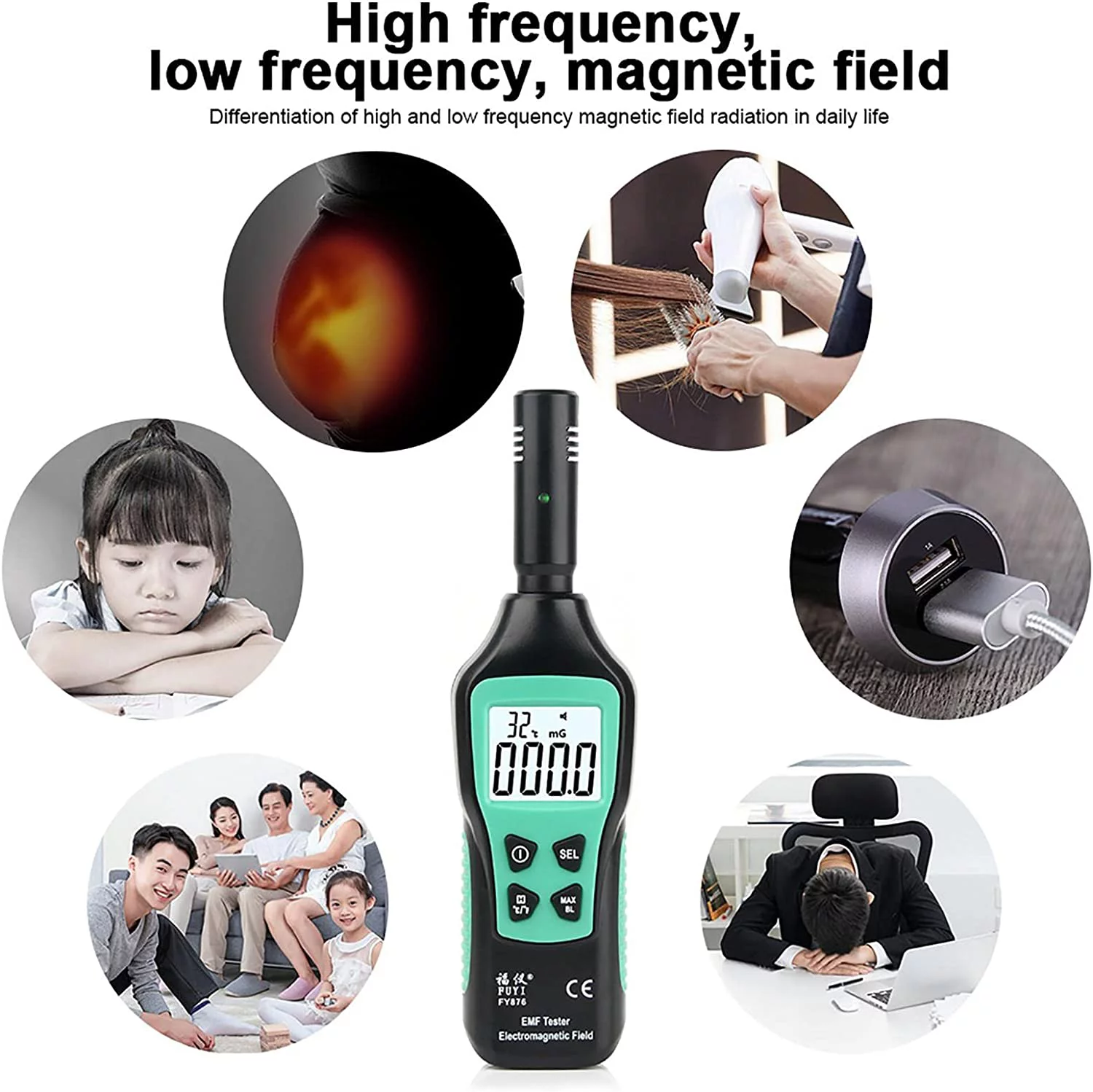 Electromagnetic Radiation Detector Handheld EMF Meter Electronic Electromagnetic Radiation Detector Monitor Household High Precision Wave Radiation Tester Digital LCD EMF Detector