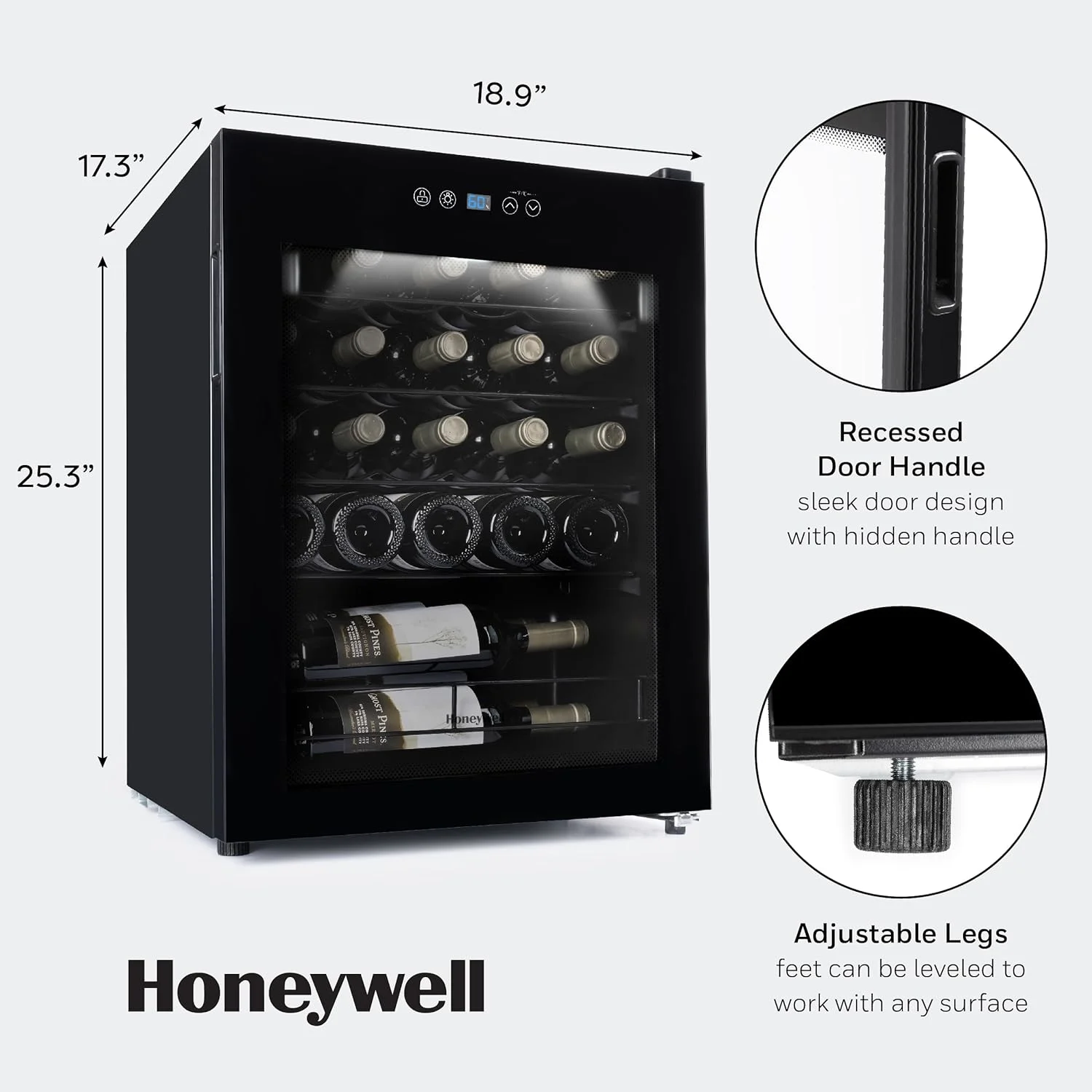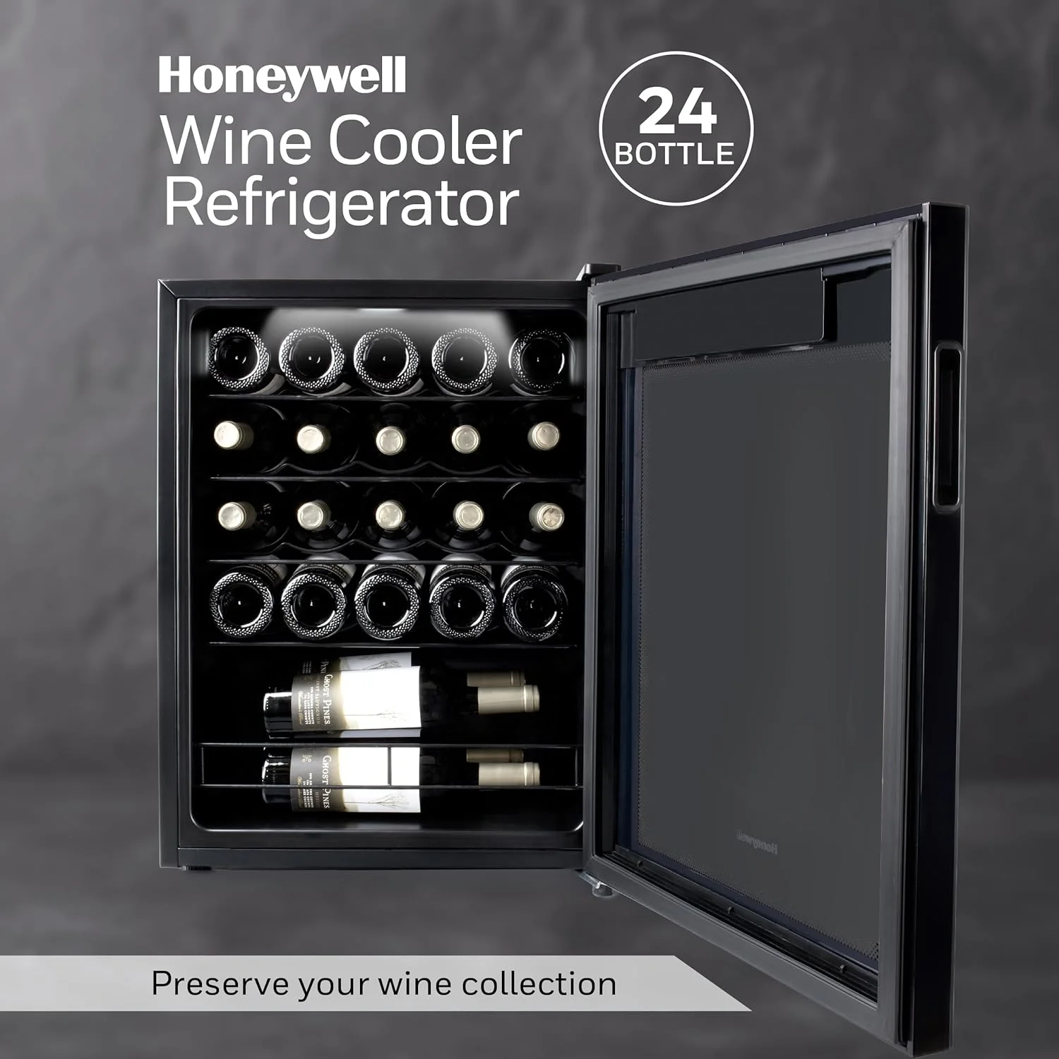 Honeywell 24 Bottle Compressor Wine Cooler Refrigerator for Red, White, Champagne or Sparkling Wine, Digital Temperature Control, Glass Door