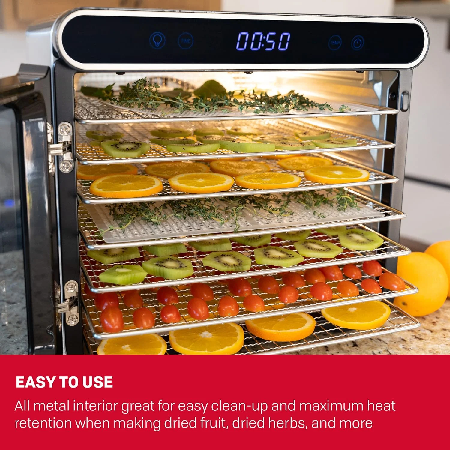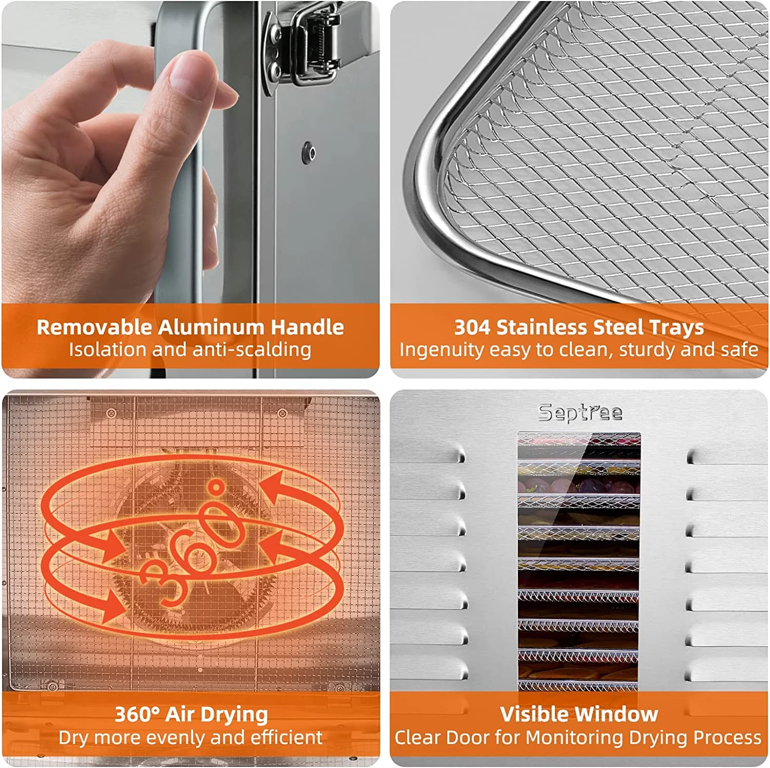 durable Septree Food Dehydrator for Jerky Meat Fruit Beef Herbs and Pet Food 10 Trays Stainless Steel Commercial Dryer Machine 1000W Adjustable Timer Digital Temperature Control