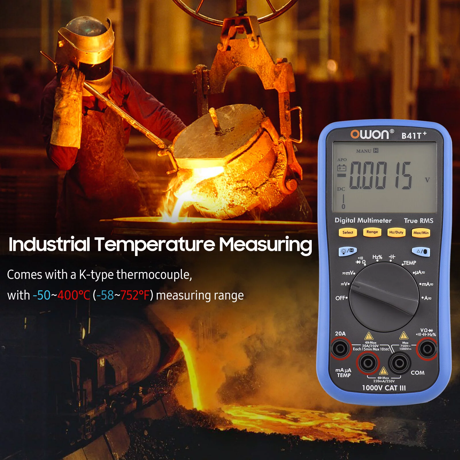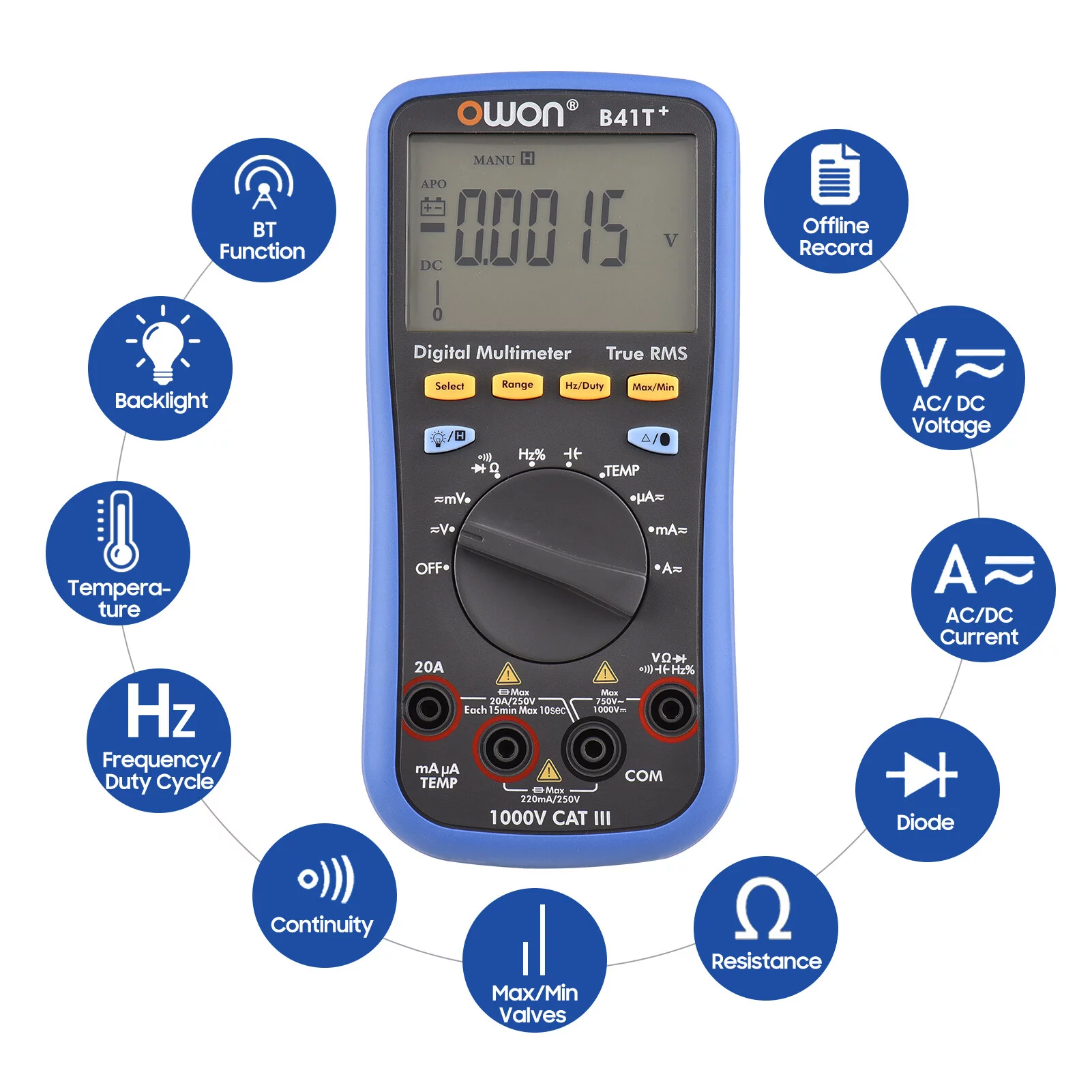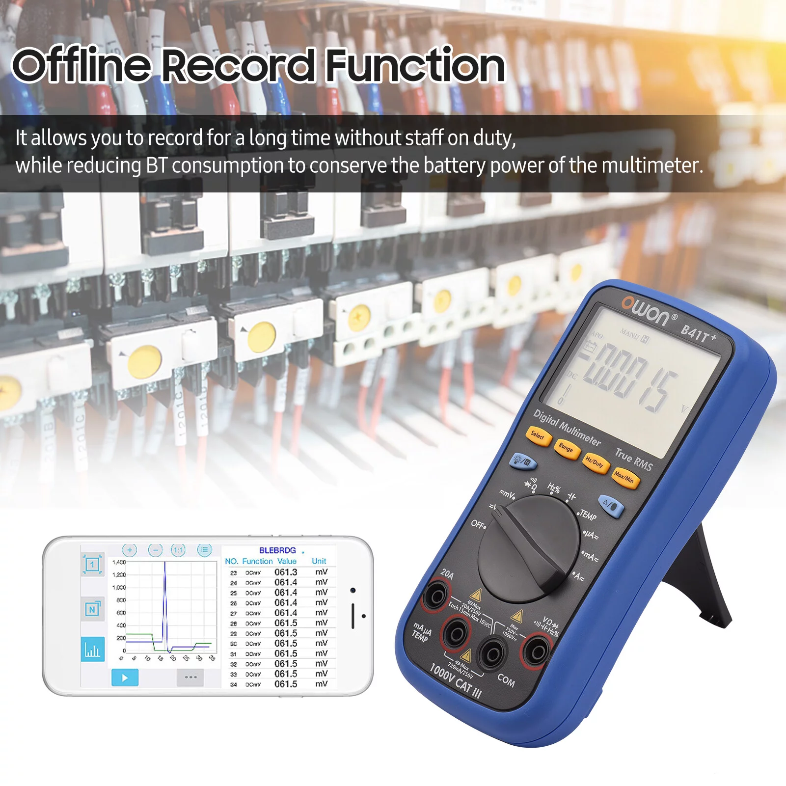Owon Digital BT Multimeter B41T+ with Offline Record True RMS Auto-ranging 22000 Counts Electrical Tester