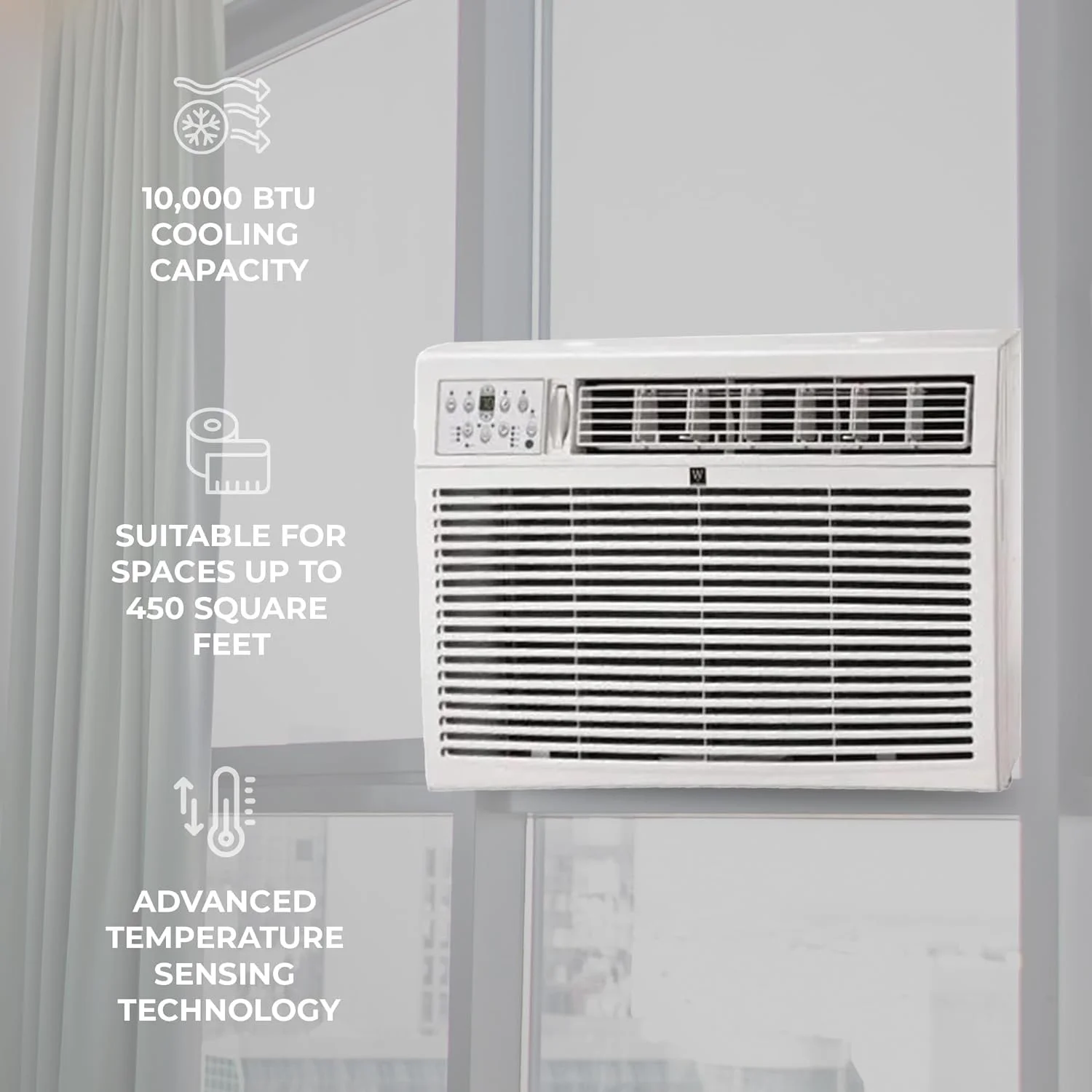 BTU Single Phase Window Air Conditioner Unit With 1-Touch Control, LED Display Digital Panel, And Installation Kit, White