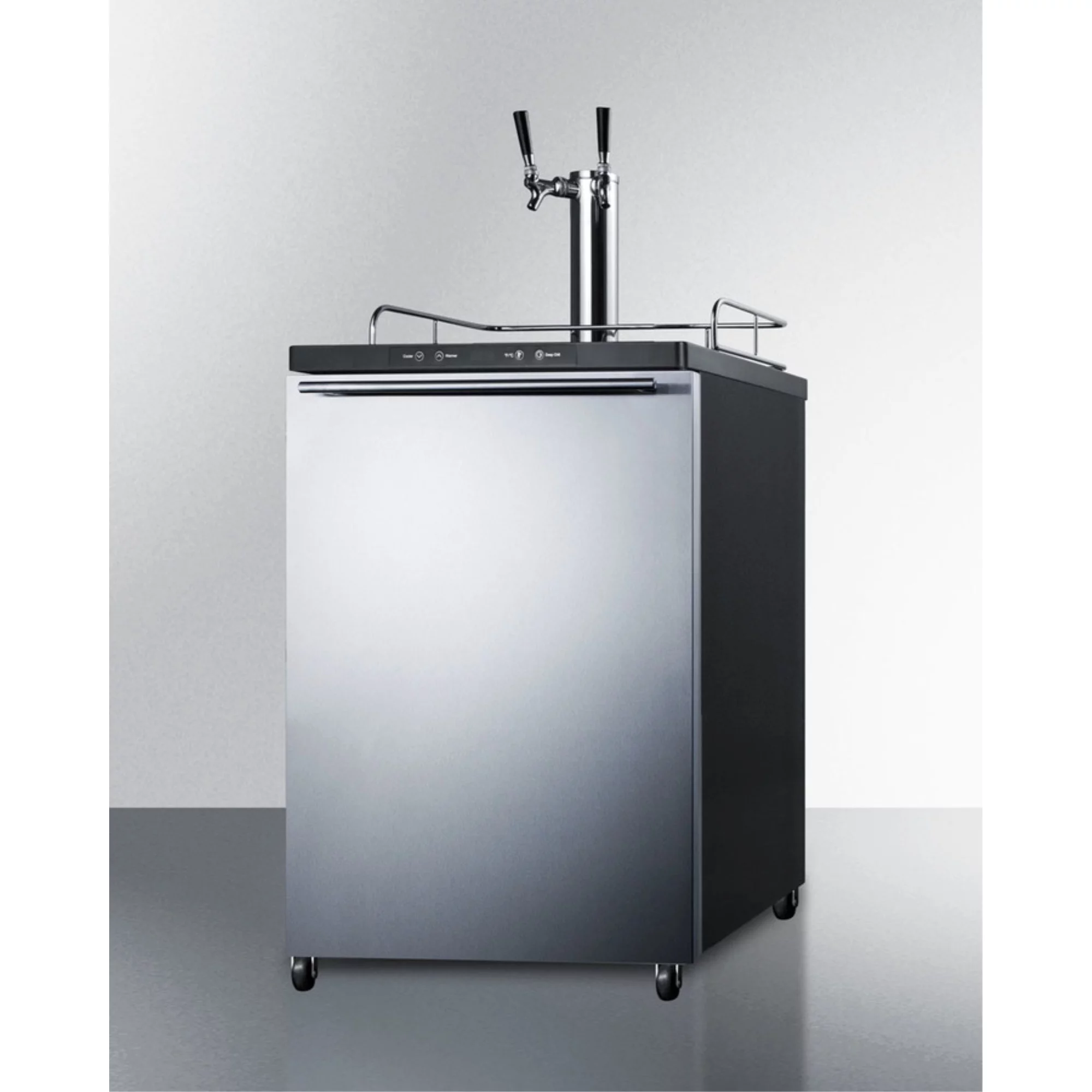 Summit Appliance SBC635MOSHV 24" Outdoor Beer Dispenser with Single Tap Digital Thermostat Automatic Defrost Ground Fault Circuit Interrupter Casters and Top Guard Rail in Stainless Steel