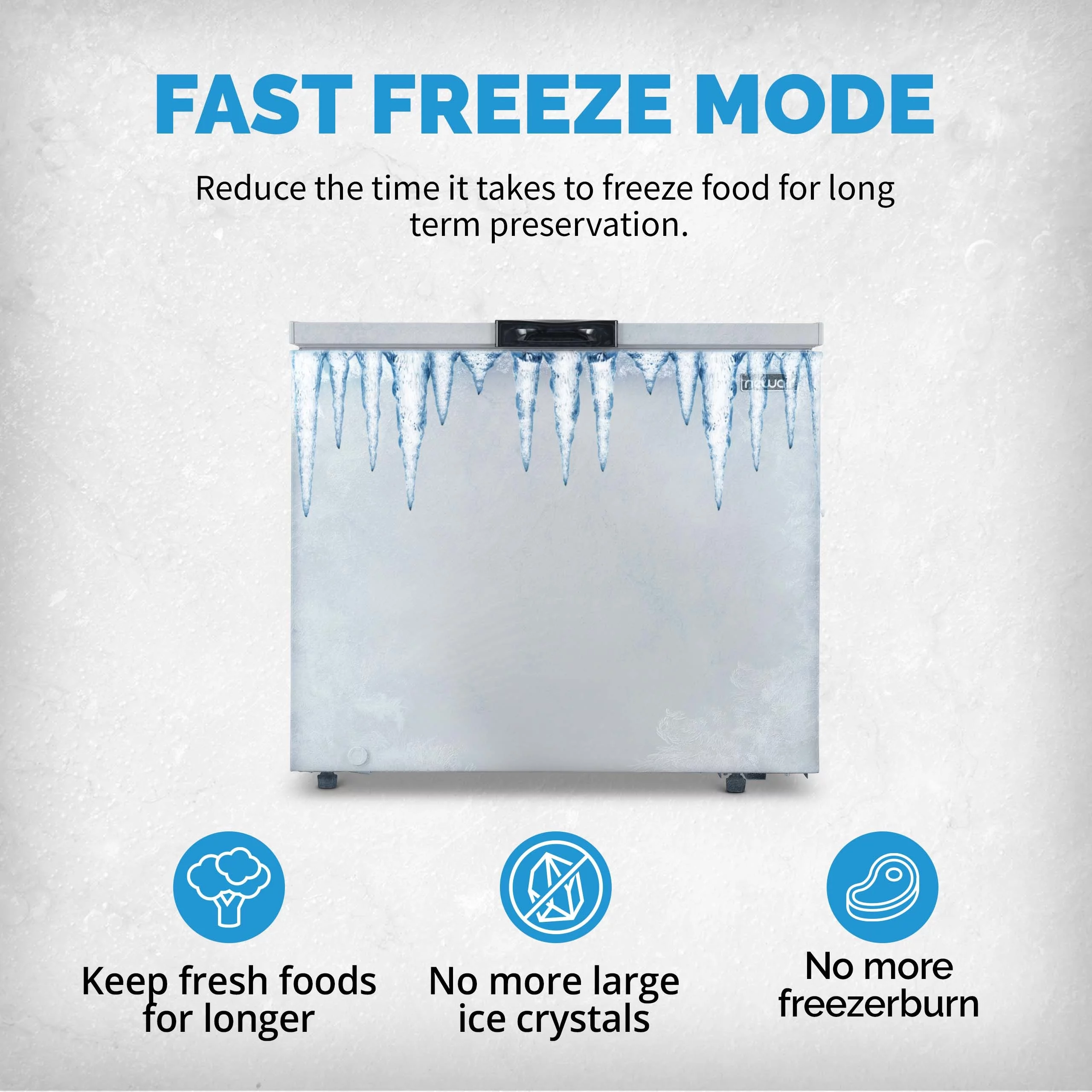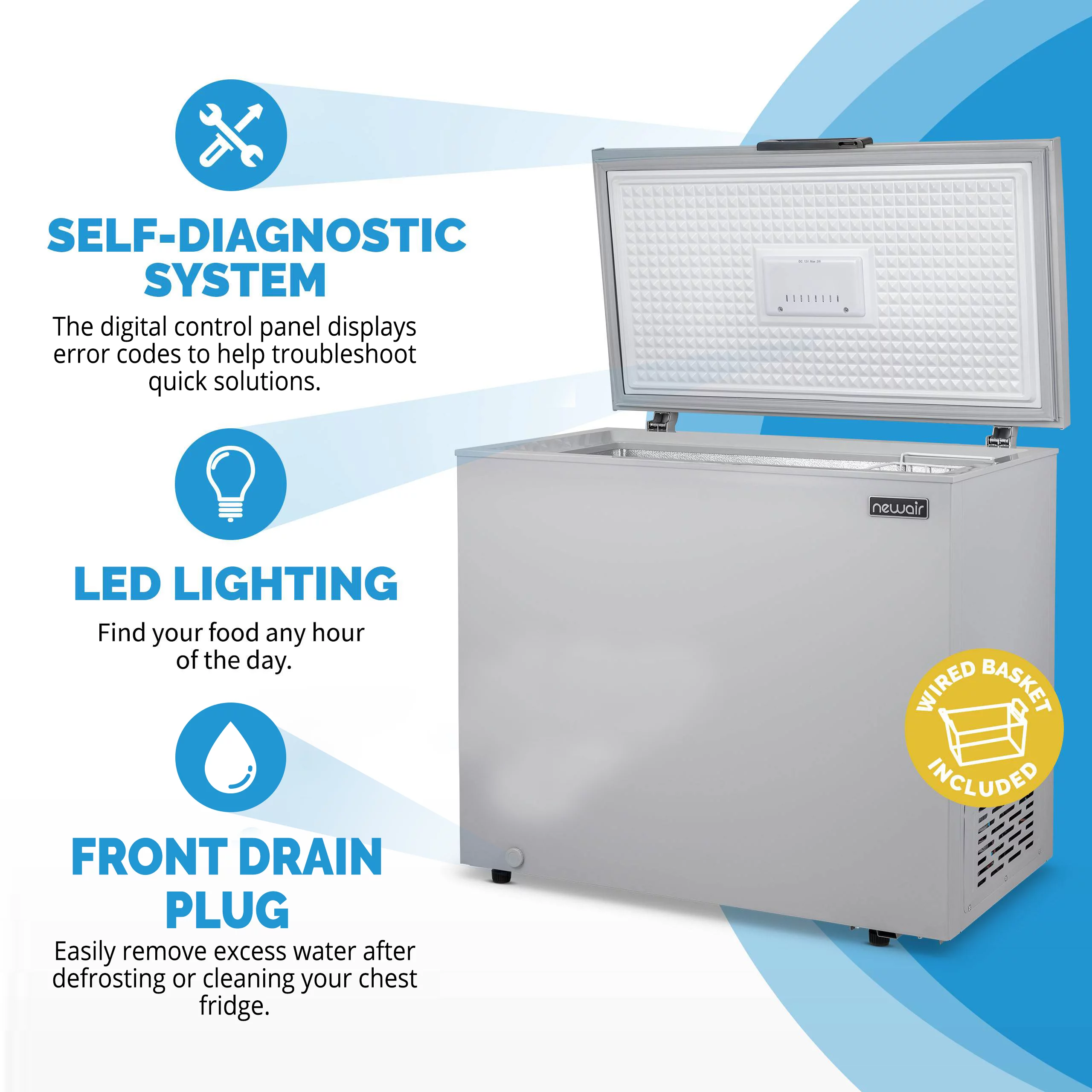 NewAir 6.7 Cu. Ft. Compact Chest Freezer in Cool Gray, Temperature Control, Fast Freeze Mode, Door Alarm, Wire Basket, Self-Diagnose Program, and LED Lighting