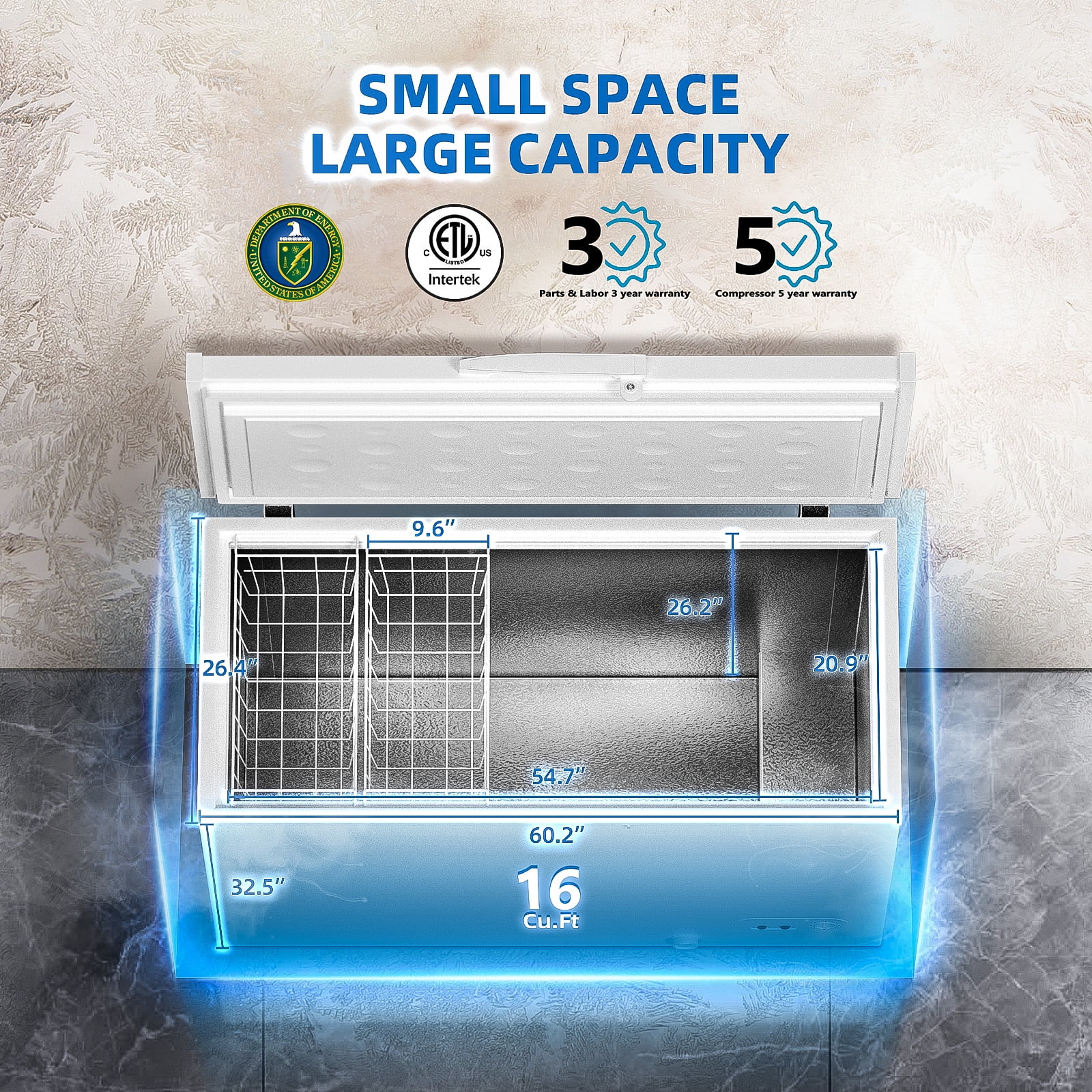 Hoccot Chest Freezer 16 Cu.Ft. 2 Removable Baskets Deep Small Compact Freezer Top Door 7 Temperature Control from -13℉-14℉ Energy Saving White