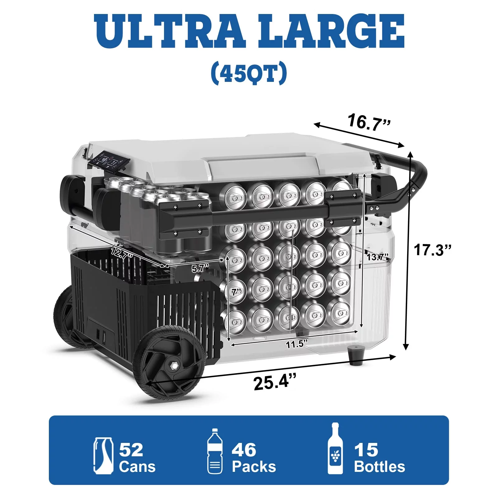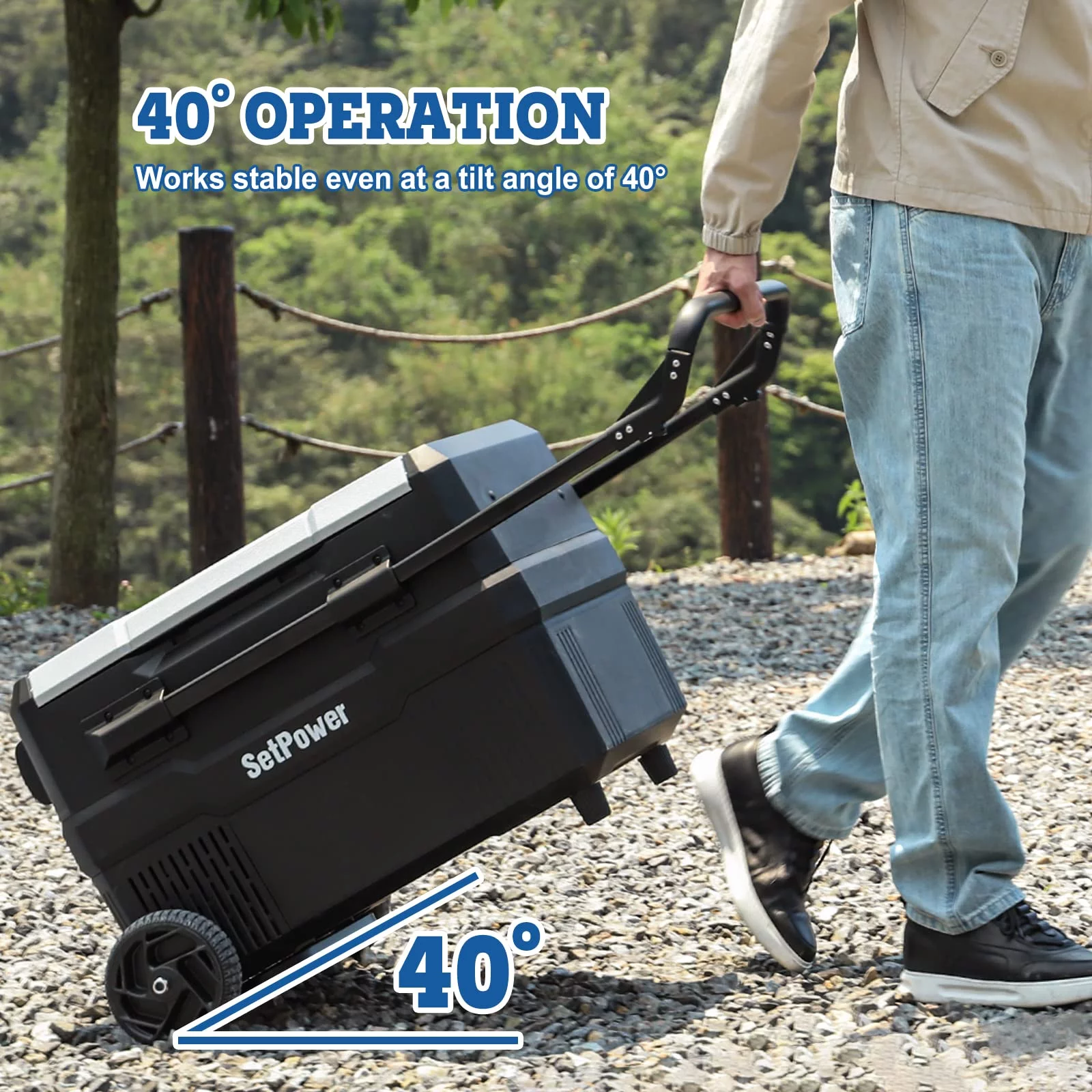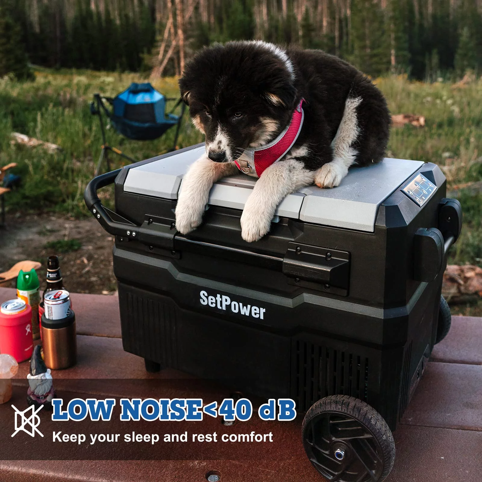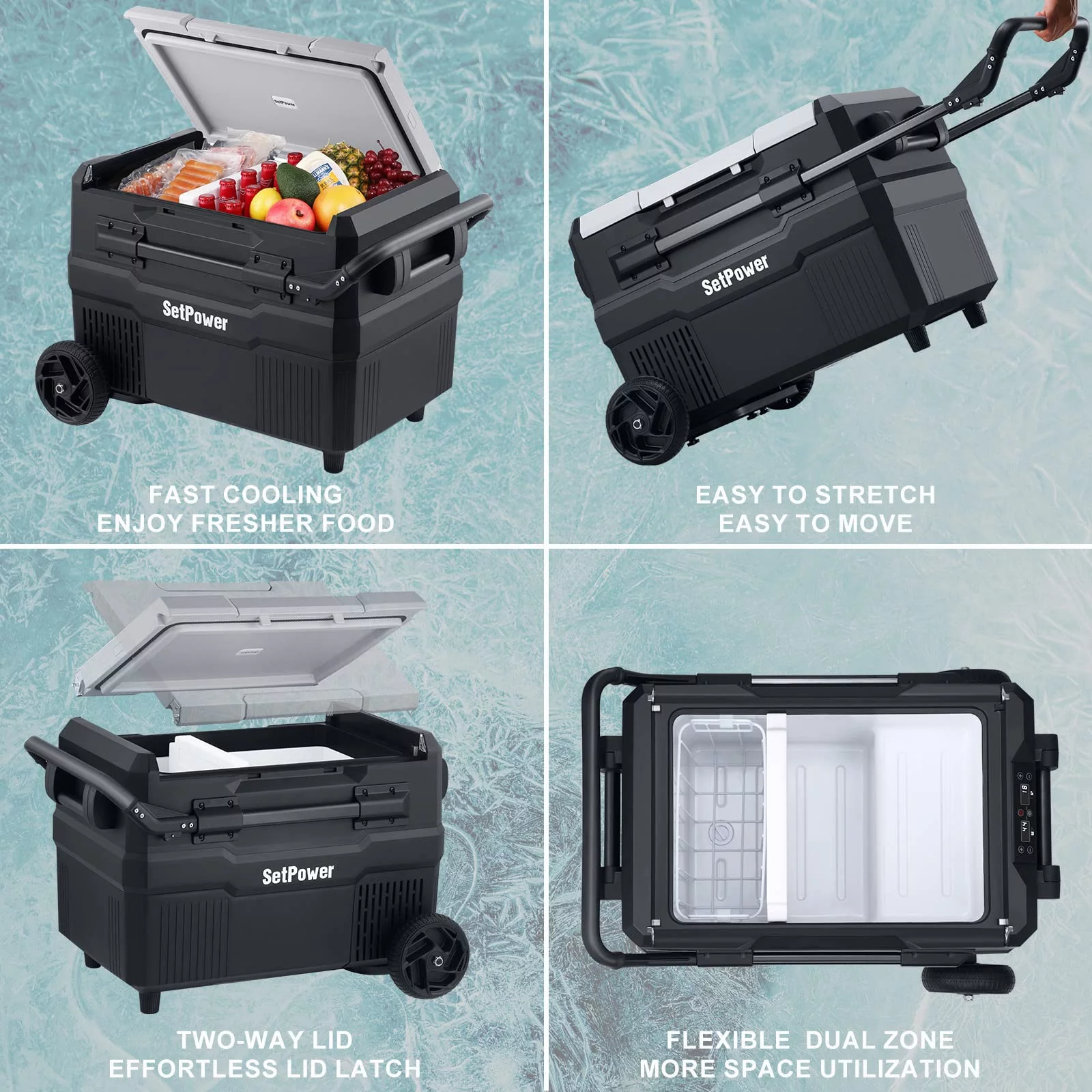 Setpower RV45D PRO Car Refrigerator with Freezer on Wheels, 45QT Flexiable Dual Zone Portable Refrigerator with 3 Year Warranty, 12v Refrigerator for Home, Outdoor, Camping, RV, Truck, Van, DC&AC