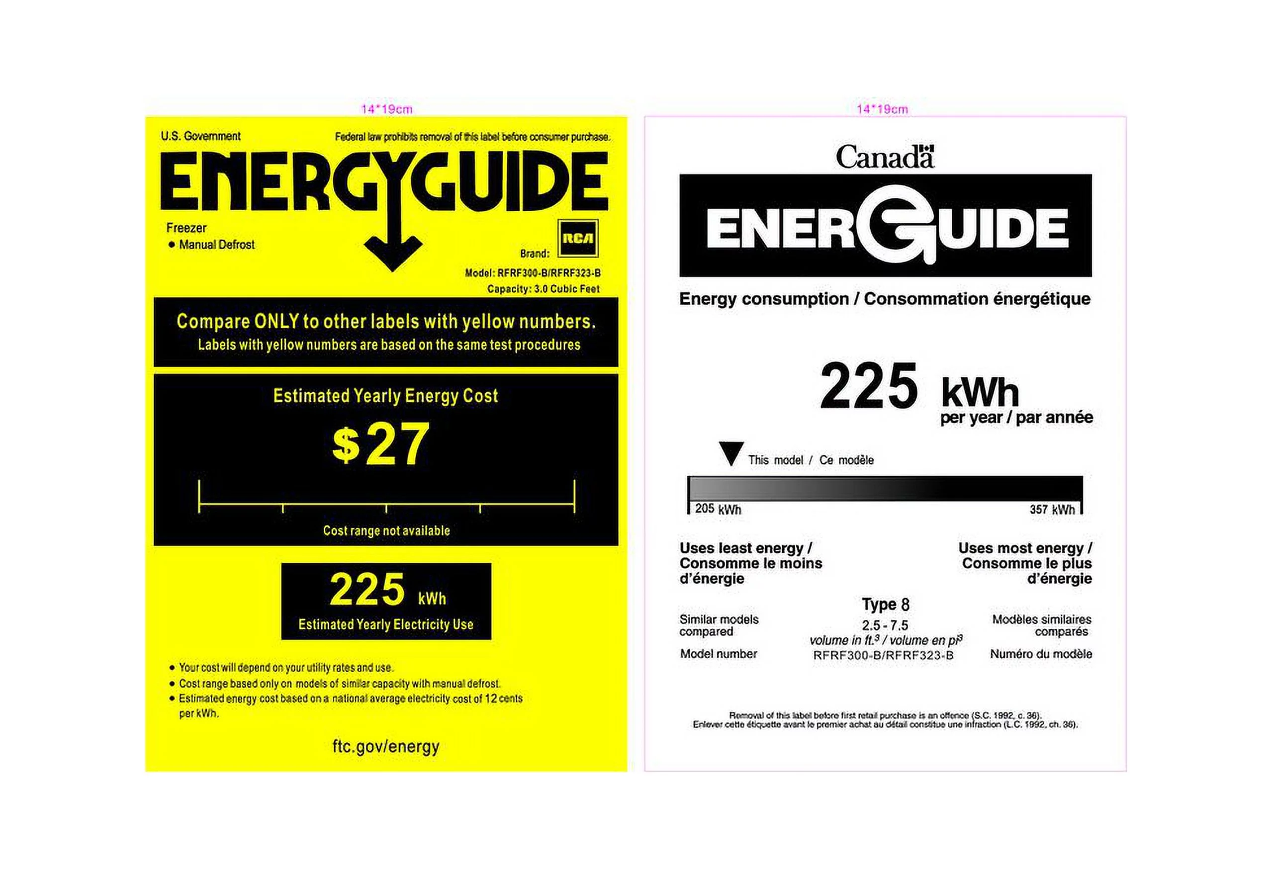 General Electric GE® 14.0 cu. ft. Top-freezer Refrigerator model RGEC036VUSX0 in Stainless Steel, Pocket type handle, with 3 temper glass grills. Dimension: Length 30.8 / width 29.3 / Height 73.3
