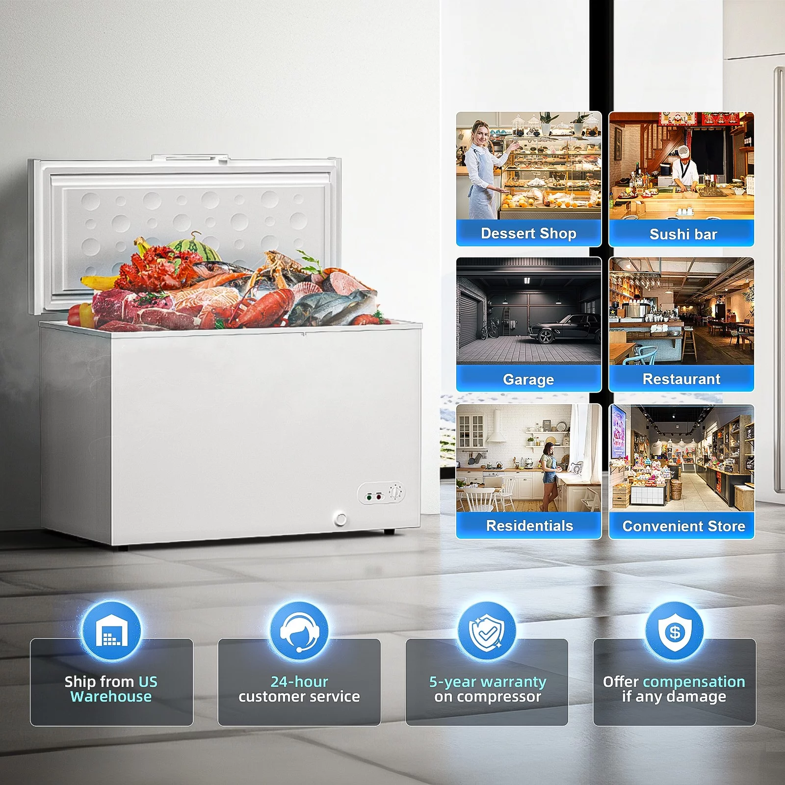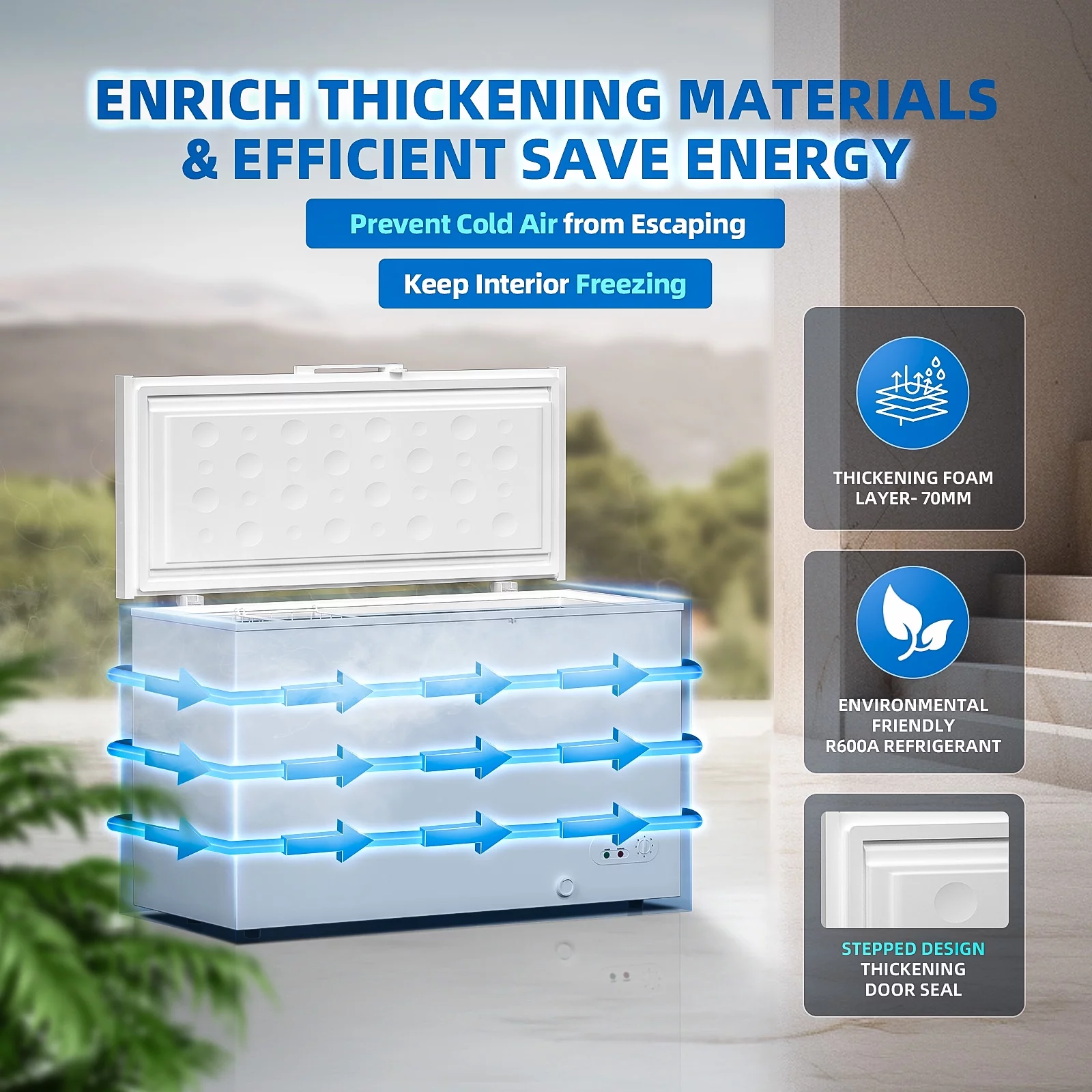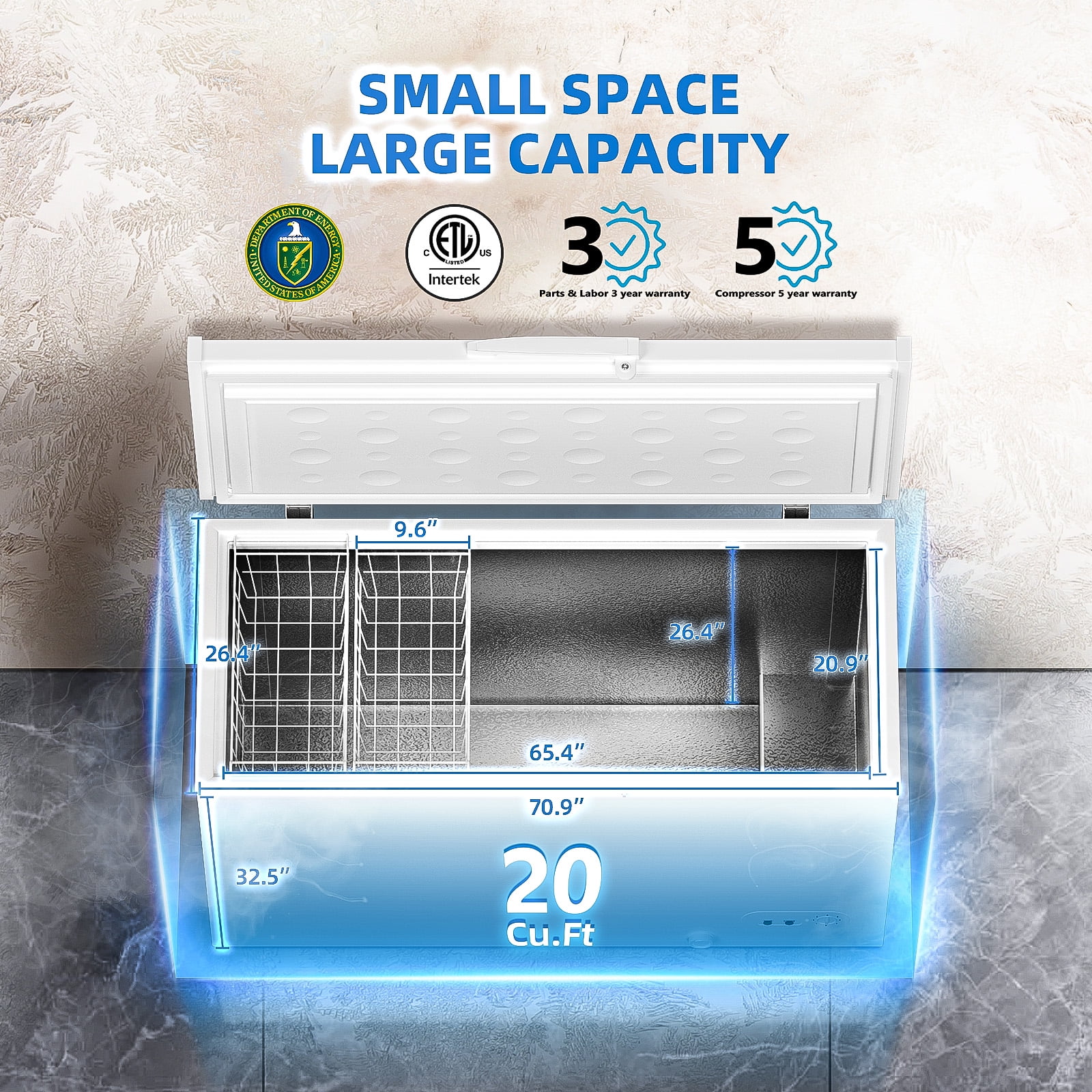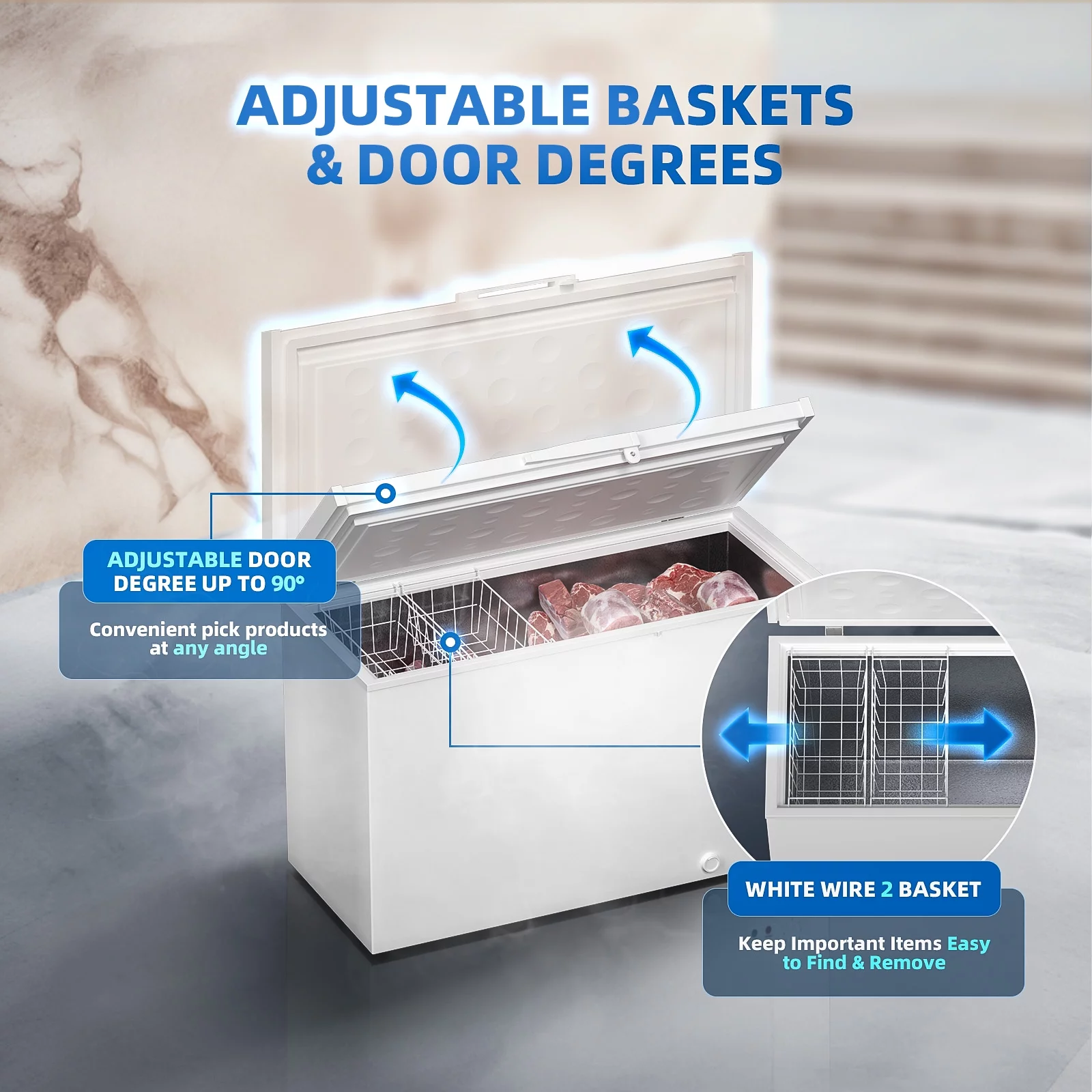 Hoccot Chest Freezer 20 Cu.Ft. 2 Removable Baskets Deep Small Compact Freezer Top Door 7 Temperature Control from -13℉-14℉ Energy Saving White