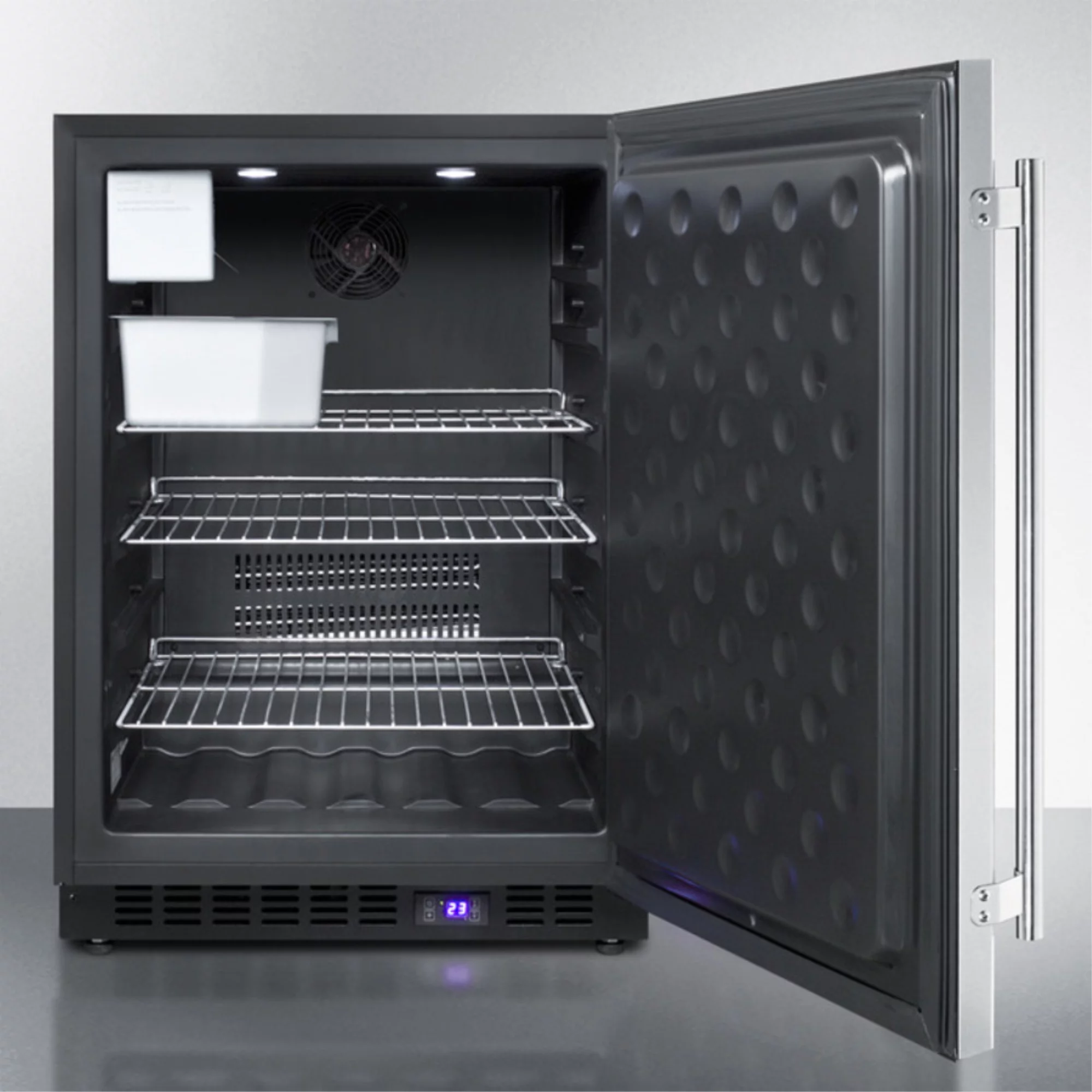 FFAR10PRO 10.1 cu.ft. auto defrost all-refrigerator with digital controls and compact manual defrost FS24LPRO all-freezer with stacking rack, both with factory-installed probe holes