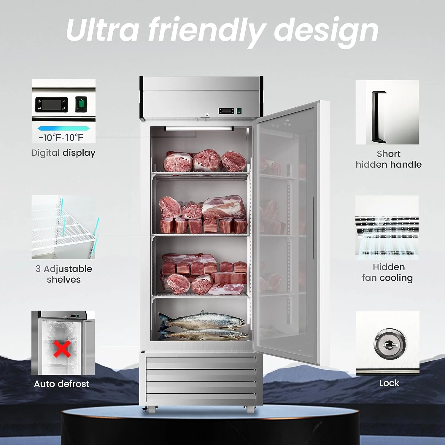 Hoccot Commercial Freezer 27" W 23 Cu. Ft Single Door Stainless Steel Reach-In Upright Freezer -10℉-10℉ Kitchen Restaurant