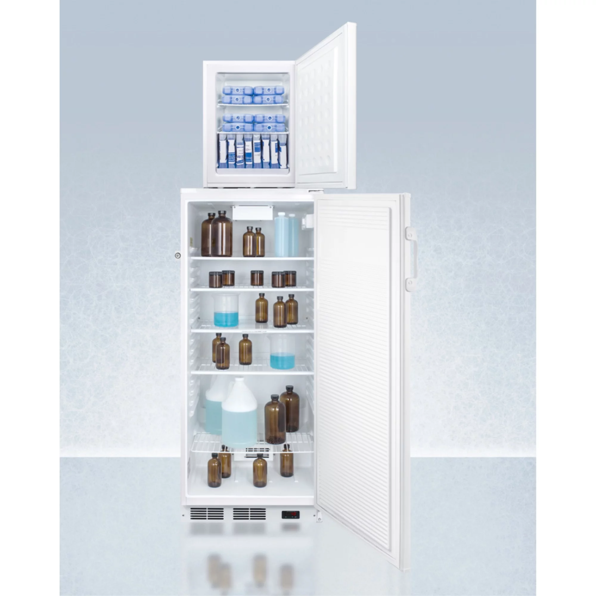 FFAR10PRO 10.1 cu.ft. auto defrost all-refrigerator with digital controls and compact manual defrost FS30LPRO all-freezer with stacking rack, both with factory-installed probe holes